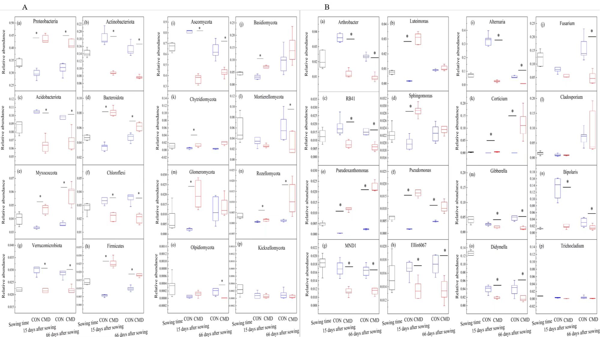 圖1牛糞沉積過程中燕麥根際微生物門水平(A)和屬水平(B)細(xì)菌的相對(duì)豐度