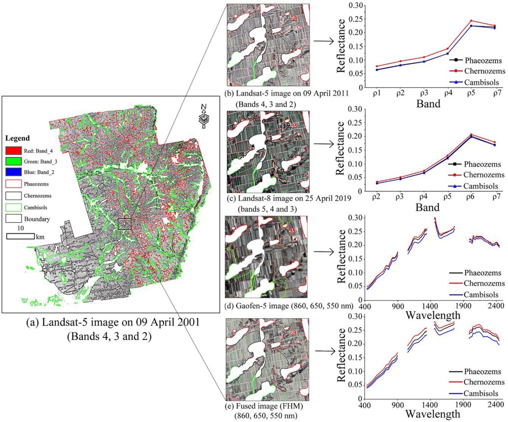 土壤是全球陸地生態(tài)系統(tǒng)中最活躍的含生命層,具有最活躍的生物地球化學(xué)能量交換和物質(zhì)循環(huán)模式。準(zhǔn)確監(jiān)測(cè)土壤類(lèi)別的空間分布特征可能有助于擴(kuò)大我們的區(qū)域環(huán)境知識(shí)。詳細(xì)的土壤圖對(duì)于有效的農(nóng)業(yè)實(shí)踐和環(huán)境保護(hù)至關(guān)重要。然而,盡管近年來(lái)數(shù)字土壤制圖(DSM)的精度不斷提高,但生成區(qū)域尺度的高精度土壤地圖仍然是一項(xiàng)具有挑戰(zhàn)性的任務(wù)。中國(guó)科學(xué)院東北地理與農(nóng)業(yè)生態(tài)研究所農(nóng)業(yè)遙感學(xué)科組的科研人員提出了一種新的基于時(shí)空譜(TSS)數(shù)據(jù)的DSM方法,并將DSM結(jié)果與中國(guó)傳統(tǒng)土壤圖進(jìn)行比較。具體的步驟是采用離散小波變換(DWT)對(duì)2000年至2019年的13個(gè)陸地衛(wèi)星多光譜數(shù)據(jù)進(jìn)行融合,以獲取時(shí)間信息,以航天飛機(jī)雷達(dá)地形任務(wù)數(shù)字高程模型(SRTM-DEM)作為空間信息,高分5號(hào)衛(wèi)星高光譜數(shù)據(jù)作為光譜信息。采用離散小波變換和譜帶分割方法融合時(shí)間和光譜信息,并將其與空間信息相結(jié)合,獲得TSS信息。然后,將TSS信息和隨機(jī)森林模型用于DSM。