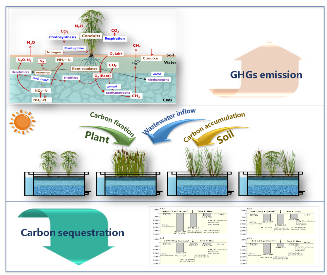 Sile Hu, Weidong Feng, Yuting Shen, Xiaoling Jin, Yaqin Miao, Shengnan Hou, Hu Cui, Hui Zhu*. Greenhouse gases emissions and carbon budget estimation in horizontal subsurface flow constructed wetlands with different plant species, Science of the total environment. 2024, 927, 172296. https://doi.org/10.1016/j.scitotenv.2024.172296