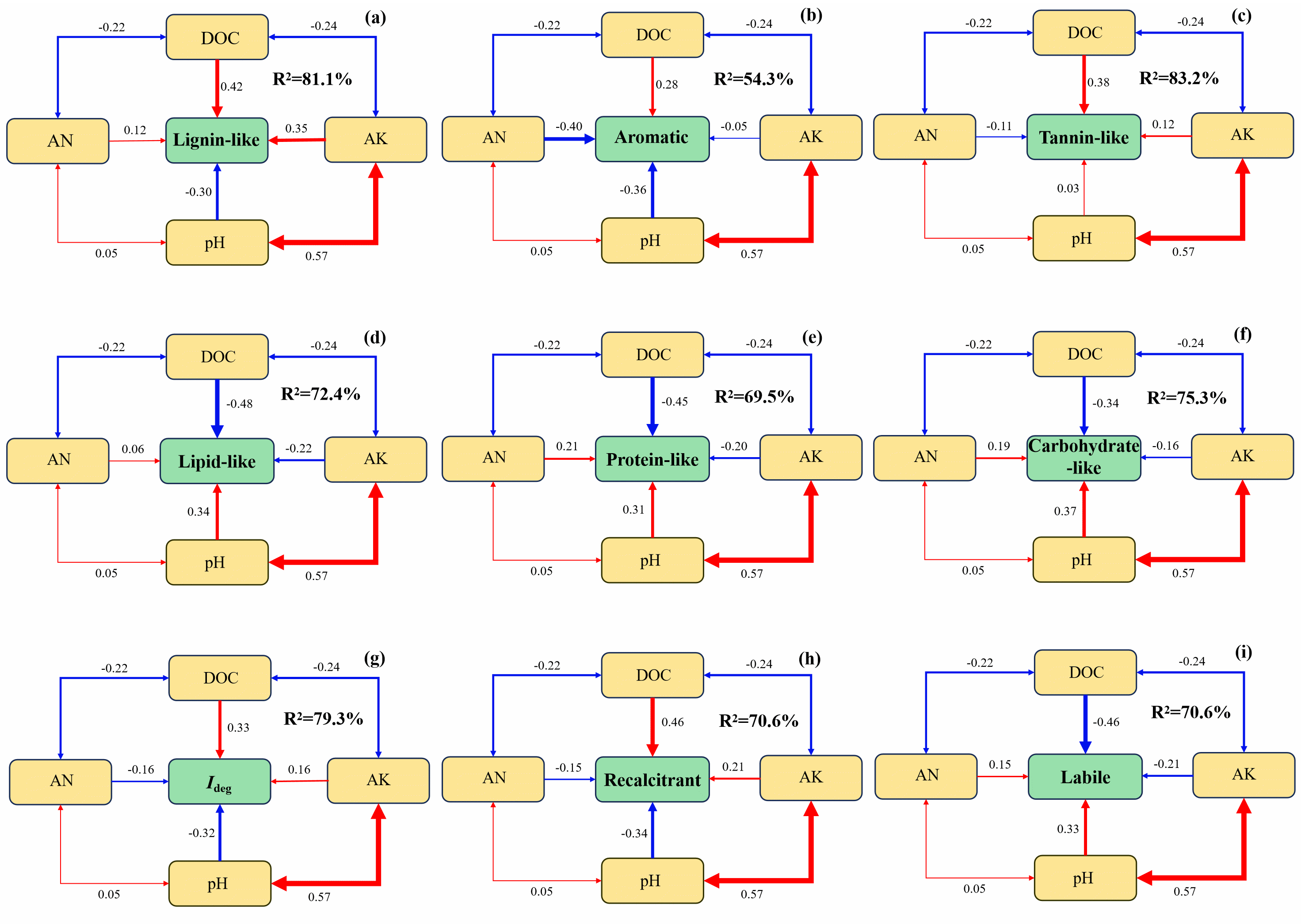 圖2 DOM組分與土壤理化因子的級(jí)聯(lián)關(guān)系