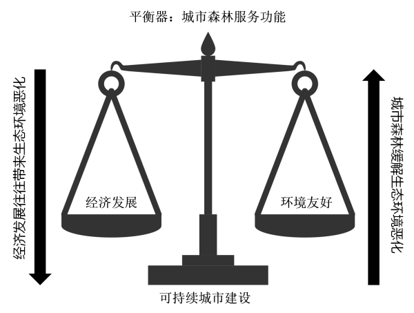 圖1 可持續(xù)的城市建設(shè)中城市森林服務(wù)功能“平衡器”的示意圖