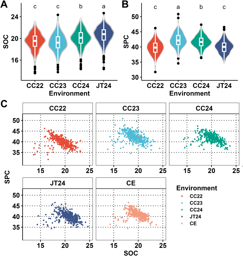340份大豆種質(zhì)中SOC與SPC性狀值比較及相關(guān)性分析