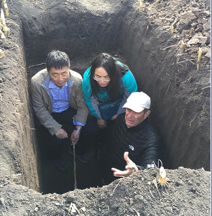 10月13日,James M.Tiedje一行參觀了海倫農(nóng)業(yè)生態(tài)實驗站和前進鄉(xiāng)勝利村試驗基地。韓曉增介紹了海倫站發(fā)展歷史和黑土保護、休耕輪、肥沃耕層構(gòu)建、系列長期定位試驗等方面取得的重要科研成果以及前進鄉(xiāng)勝利村大豆-玉米-西瓜-復(fù)種飼料(綠肥)油菜、基于肥沃耕層構(gòu)建的米豆高效輪作、大豆高效輪作等多種黑土地保護利用模式的經(jīng)濟效益,雙方就共同關(guān)注的黑土方面的科學(xué)問題開展了詳細的討論,James M.Tiedje充分肯定了海倫站在黑土保護方面取得的成績。