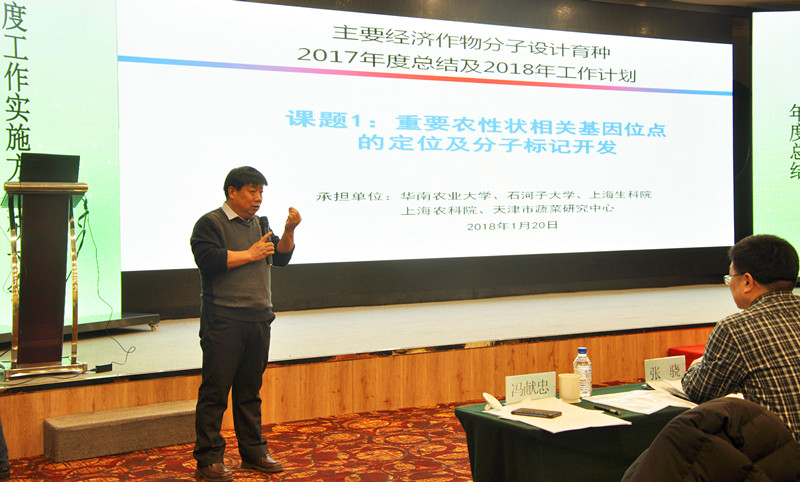 馮獻(xiàn)忠匯報了項目概況、2017年度項目研究進(jìn)展、2018年度項目實(shí)施方案、項目經(jīng)費(fèi)執(zhí)行情況、項目組織管理情況及項目中存在的問題及對策等情況;天津市蔬菜研究中心魏愛民研究員、河南大學(xué)的張驍教授、馮獻(xiàn)忠研究員、華南植物園的區(qū)永祥研究員和陜西省雜交油菜研究中心的穆建新研究員分別代表五個課題匯報了2017年度課題總結(jié)及2018年度課題工作計劃實(shí)施方案。針對各課題的匯報情況,項目組開展了專題討論研究,進(jìn)一步完善了項目和課題的實(shí)施方案。