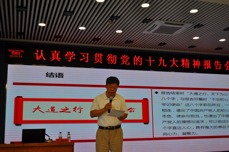 陳耀輝以《不忘初心 牢記使命 奪取新時代中國特色社會主義偉大勝利——認(rèn)真學(xué)習(xí)貫徹黨的十九大精神》為題,緊緊圍繞黨的十九大主題和發(fā)展成果、習(xí)近平新時代中國特色社會主義思想、過去五年的歷史性成就和歷史性變革、中國特色社會主義進(jìn)入新時代、我國社會主要矛盾的變化、兩個一百年奮斗目標(biāo)的戰(zhàn)略部署、堅定新時代的文化自信、全面從嚴(yán)治黨等八個大的方面,對黨的十九大精神進(jìn)行了詳細(xì)解讀,報告內(nèi)容翔實,案例豐富,與實際生活聯(lián)系緊密,深刻闡釋了黨的十九大提出的一系列重要思想、重要觀點、重大論斷、重大舉措。報告站位高、解讀透、信息量大、系統(tǒng)深入,圍繞十九大精神“不忘初心、牢記使命”這一主題,生動闡述了中國共產(chǎn)黨在長期奮斗中形成的“為中國人民謀幸福,為中華民族謀復(fù)興”的初心和使命,對全所深入學(xué)習(xí)貫徹十九大精神,推動科技創(chuàng)新工作必將產(chǎn)生積極的促進(jìn)作用。