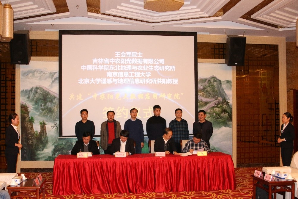2018年12月19日, 東北地理所與吉林省中農(nóng)陽(yáng)光數(shù)據(jù)有限公司在長(zhǎng)春國(guó)際會(huì)展中心簽署合作協(xié)議。雙方就合作建設(shè)“中農(nóng)陽(yáng)光大數(shù)據(jù)研究院”、聯(lián)合申報(bào)和投標(biāo)各類(lèi)項(xiàng)目、共同制定行業(yè)標(biāo)準(zhǔn)、建立數(shù)據(jù)共享機(jī)制與平臺(tái)、共同促進(jìn)科技成果轉(zhuǎn)化、共同開(kāi)展人才培養(yǎng)達(dá)成一致意見(jiàn)。隨后,東北地理所與中國(guó)科學(xué)院院士王會(huì)軍、吉林省中農(nóng)陽(yáng)光數(shù)據(jù)有限公司、北京大學(xué)遙感與地理信息研究所、南京信息工程大學(xué)、吉林省氣象科學(xué)研究所共同簽訂了《共建“中農(nóng)陽(yáng)光大數(shù)據(jù)應(yīng)用研究院”》合作協(xié)議,簽約各方將在遙感與氣象大數(shù)據(jù)領(lǐng)域的技術(shù)研發(fā)、課題攻關(guān)、應(yīng)用推廣、專(zhuān)業(yè)人才培養(yǎng)多領(lǐng)域開(kāi)展合作及成果轉(zhuǎn)化。吉林省中農(nóng)陽(yáng)光數(shù)據(jù)有限公司是國(guó)內(nèi)領(lǐng)先的大農(nóng)業(yè)空間信息技術(shù)服務(wù)的提供商,圍繞“農(nóng)林牧草漁”的大農(nóng)業(yè)領(lǐng)域,運(yùn)用大數(shù)據(jù)分析技術(shù),在農(nóng)業(yè)風(fēng)險(xiǎn)管理、生態(tài)環(huán)境和農(nóng)業(yè)精準(zhǔn)生產(chǎn)領(lǐng)域的服務(wù)應(yīng)用取得突出業(yè)績(jī)。