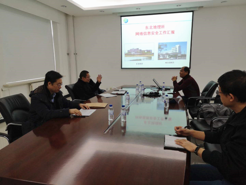 2019年1月25日,由長春分院科技合作處處長侯鵬、科技網(wǎng)長春分中心主任孟凡一組成的網(wǎng)絡(luò)安全檢查小組到東北地理所檢查網(wǎng)絡(luò)安全工作。信息中心副主任張慶平匯報了我所網(wǎng)絡(luò)安全工作的開展情況,對目前研究所網(wǎng)絡(luò)安全人員組成、規(guī)章制度建設(shè)情況、網(wǎng)絡(luò)安全硬件、軟件運行狀態(tài)以及研究所運行中的信息系統(tǒng)和網(wǎng)站進行了詳細匯報。