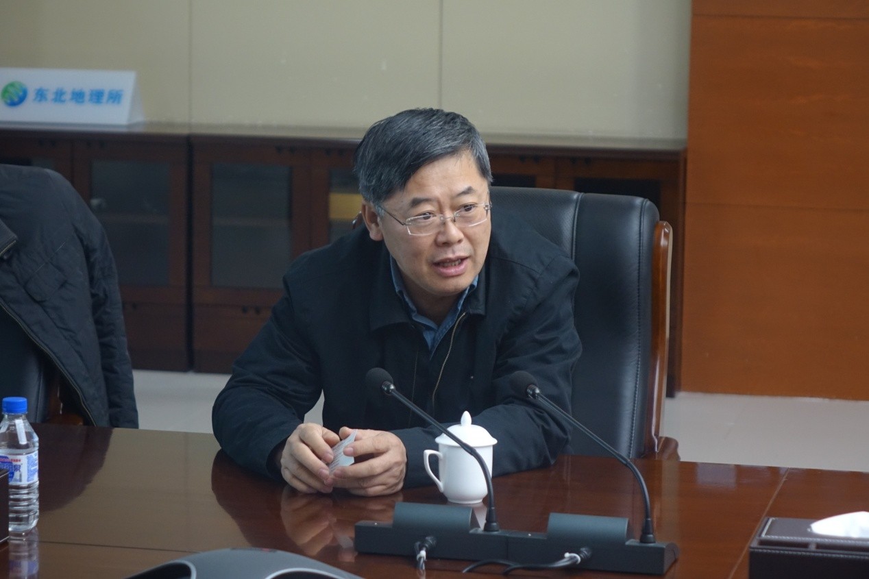 2019年3月22日,松原市松旅集團(tuán)董事長孫國華一行4人來到東北地理所就院地科技合作進(jìn)行座談交流。東北地理所書記蘇陽研究員、監(jiān)察審計室主任邵慶春研究員、院地合作辦公室主任劉福濤研究員、劉強(qiáng)研究員參加了座談。會議由劉福濤主持。
