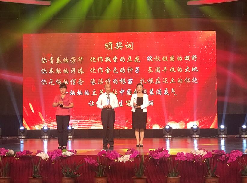 授予李艷華的頒獎(jiǎng)詞:“你青春的芳華,化作飄香的豆花,綻放祖國的田野;你奉獻(xiàn)的汗珠,化作金色的種子,長(zhǎng)滿豐收的大地;你無悔的信念,像深情的根苗,扎根在泥土的懷抱;金燦燦的豆子讓中國飯碗裝滿底氣,讓你的人生寫滿美麗”。