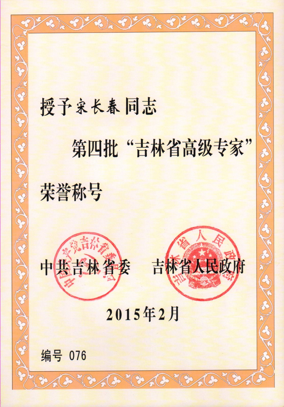 為深入實(shí)施人才強(qiáng)省戰(zhàn)略,發(fā)揮人才的引領(lǐng)和帶動(dòng)作用,集聚培育一批高層次領(lǐng)軍型人才,經(jīng)嚴(yán)格評(píng)選,我單位宋長(zhǎng)春同志被吉林省委、省政府授予第四批“吉林省高級(jí)專家”榮譽(yù)稱號(hào)。吉林省高級(jí)專家是省委、省政府授予在吉林省工作的高層次人才的最高榮譽(yù)稱號(hào),每三年評(píng)選一次。