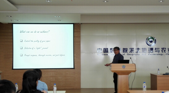 7月2日上午,胥教授作了題為“How to quickly publish your research in SCI-indexed journals?”的SCI論文寫作技能指導(dǎo)報告,報告會由水文與水資源學(xué)科組章光新研究員主持。胥教授從論文期刊選定、投稿流程、評審環(huán)節(jié)、論文架構(gòu)、寫作技巧、注意事項以及論文返修等多個方面向大家進行了深入系統(tǒng)的講解。指出了目前中國學(xué)者在SCI論文寫作方面存在的普遍弱點,并分別從科學(xué)選題、問題的提出和假設(shè)、結(jié)果的討論、結(jié)論的總結(jié)、摘要的架構(gòu)等方面,針對一些典型投稿案例做出了具體而生動的示例分析。這次報告受到了我所師生熱烈好評,對于大家提高論文寫作水平、高效發(fā)表科研論文以及提升科研成果的學(xué)術(shù)影響力具有非常重要的實際指導(dǎo)意義。