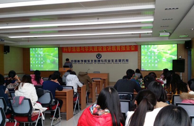 為貫徹落實中央關于構建社會主義核心價值體系、加強社會誠信建設的要求和部署,弘揚東北地理所“團結、務實、開拓、發(fā)展”的精神,傳承研究所優(yōu)良科研傳統(tǒng)、塑造良好學術氛圍,我所研究生黨總支開展了以“堅守科學道德,建設良好學風”為主題的科學道德與學風建設宣講報告活動。