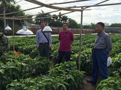 在我所承擔(dān)的院先導(dǎo)專項(xiàng)“大豆、玉米設(shè)計(jì)型新品種選育”子課題大豆基地,杜維廣研究員和院大豆分子設(shè)計(jì)育種重點(diǎn)實(shí)驗(yàn)室主任、子課題負(fù)責(zé)人劉寶輝研究員詳細(xì)向何所長(zhǎng)介紹了任務(wù)的進(jìn)展。為了提高繁殖系數(shù),人工延長(zhǎng)自然光照,延遲大豆開(kāi)花。當(dāng)看到補(bǔ)光繁育區(qū)相鄰被輻射到的大豆喜人的長(zhǎng)勢(shì),而未輻射區(qū)的大豆植株矮小時(shí),何所長(zhǎng)“風(fēng)趣”地指著長(zhǎng)勢(shì)茂盛的大豆說(shuō)“這就是借光”,又轉(zhuǎn)過(guò)身對(duì)一旁的黑龍江省農(nóng)科院牡丹江分院任海祥副院長(zhǎng)說(shuō)“我們一定要進(jìn)行深度合作、強(qiáng)強(qiáng)聯(lián)手,充分發(fā)揮各自優(yōu)勢(shì),做到相互提升,能真正地彼此借光”。
