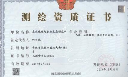 同時(shí),我所遙感與地理信息中心于2015年完成了ISO9001質(zhì)量管理體系認(rèn)證,并與行業(yè)管理部門---吉林省測繪地理信息局積極溝通,順利完成了測繪乙級資質(zhì)的換證工作。我所繼續(xù)持有測繪資質(zhì)證書,為我所科研人員從事相關(guān)工作提供了重要的資質(zhì)依據(jù),為申請和承擔(dān)相關(guān)科研和生產(chǎn)任務(wù)提供了平臺基礎(chǔ)。
