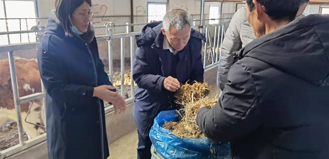 2021年12月14日到15日,吉林省畜牧局飼料飼草處處長(zhǎng)張友良和關(guān)百軍一行到“黑土糧倉(cāng)”科技會(huì)戰(zhàn)長(zhǎng)春示范區(qū)公主嶺示范基地和長(zhǎng)嶺草地農(nóng)牧生態(tài)研究站就菌酶協(xié)同發(fā)酵黃貯秸稈技術(shù)進(jìn)行現(xiàn)場(chǎng)調(diào)研,中國(guó)科學(xué)院東北地理與農(nóng)業(yè)生態(tài)研究所梁愛珍研究員、鐘榮珍研究員和陳國(guó)雙高級(jí)工程師陪同調(diào)研。