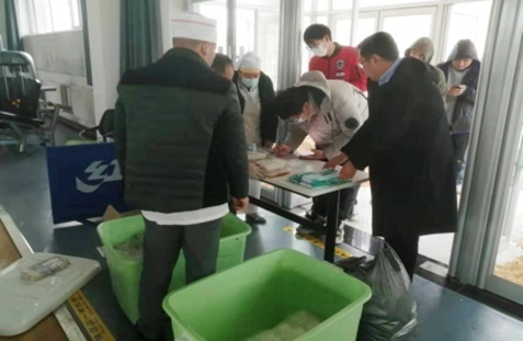 中午時(shí)分,用餐微信群里面發(fā)出用餐通知,物業(yè)人員按照統(tǒng)計(jì)人數(shù)把飯菜、水果送到研究生宿舍和流動(dòng)公寓宿舍。姜明和蘇陽(yáng)關(guān)切地詢問(wèn)飯菜是否可口、是否熱乎,要求一定要搞好食堂衛(wèi)生和保障食材來(lái)源安全,并設(shè)置 “臨時(shí)廚房”供簡(jiǎn)單加工食材使用。送餐完畢,姜明和蘇陽(yáng)來(lái)到研究所食堂,慰問(wèn)員工食堂,對(duì)工作人員的辛勤付出表示感謝。