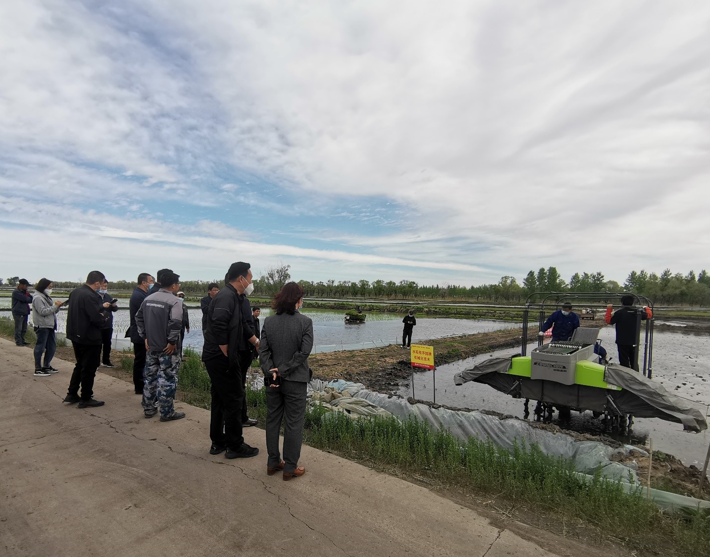 為加快推動(dòng)吉林西部綠色水稻發(fā)展以及種植機(jī)械化水平,“黑土糧倉(cāng)”科技會(huì)戰(zhàn)大安示范區(qū)鎮(zhèn)賚基地團(tuán)隊(duì)針對(duì)水田肥料利用效率不高及傳統(tǒng)插秧方式費(fèi)工費(fèi)力的問題,5月25日組織召開了水稻機(jī)插同步側(cè)深施肥技術(shù)與水稻有序拋秧機(jī)械化技術(shù)現(xiàn)場(chǎng)觀摩會(huì)。白城市農(nóng)業(yè)農(nóng)村局副局長(zhǎng)于洪祥與鎮(zhèn)賚縣農(nóng)業(yè)農(nóng)村局局長(zhǎng)梁寶山參會(huì),并聽取鎮(zhèn)賚基地負(fù)責(zé)人王明明博士關(guān)于鎮(zhèn)賚基地工作進(jìn)展及近期工作安排的匯報(bào)。
