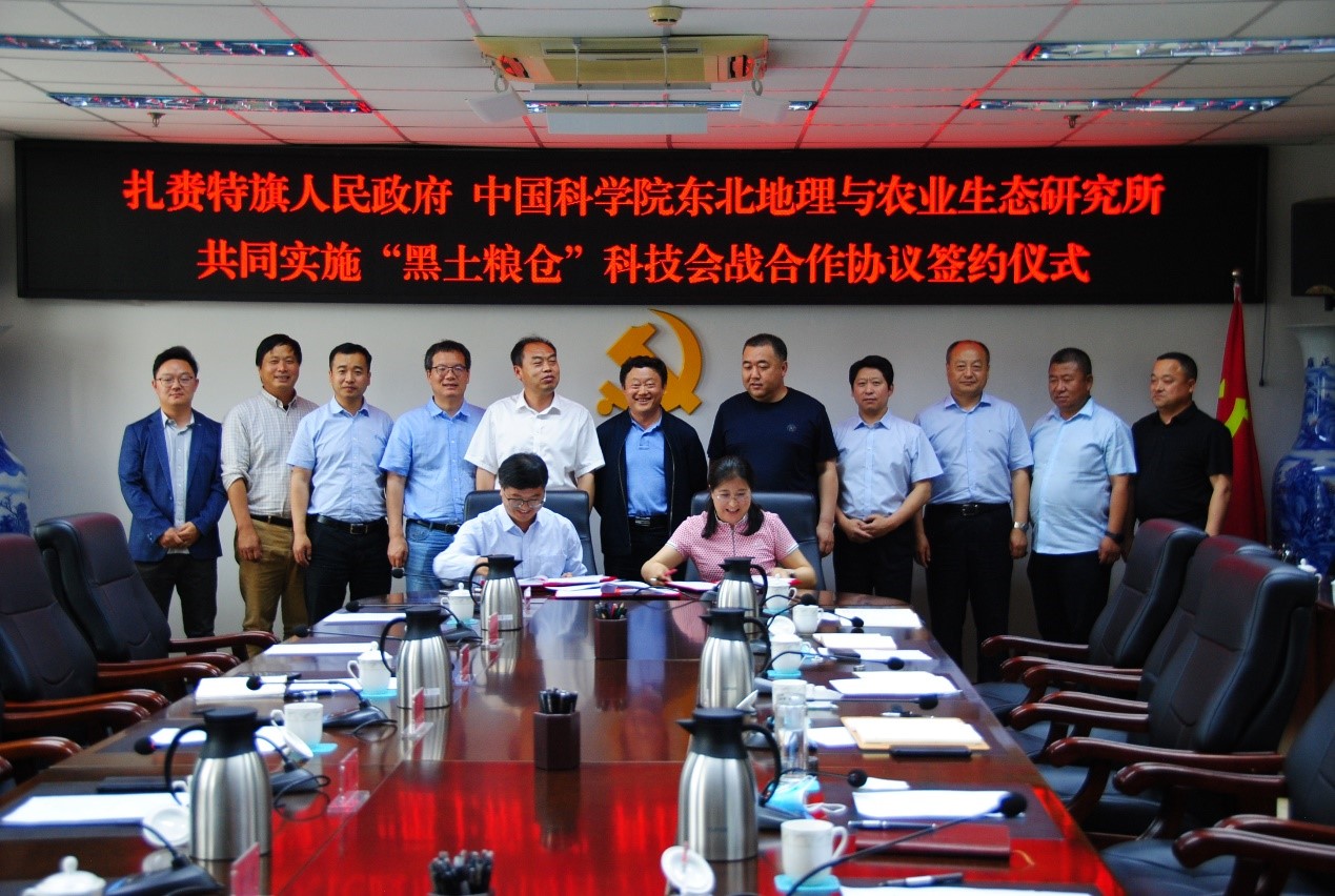 東北地理所科研計劃處、黑土辦,扎賚特旗農(nóng)牧和科技局相關(guān)領(lǐng)導(dǎo)全程參加了調(diào)研和簽約儀式。