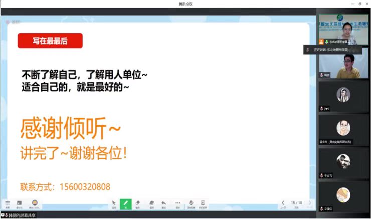 本次分享會(huì),內(nèi)容扎實(shí)、豐富且全面,幫助同學(xué)們有針對(duì)性的了解了目前就業(yè)政策和形勢(shì),有助于引導(dǎo)廣大研究生明確就業(yè)方向、做好學(xué)業(yè)規(guī)劃和求職準(zhǔn)備。最后,衷心的感謝三位校友對(duì)東北地理所研究生就業(yè)工作的支持以及對(duì)學(xué)弟、學(xué)妹的關(guān)心。