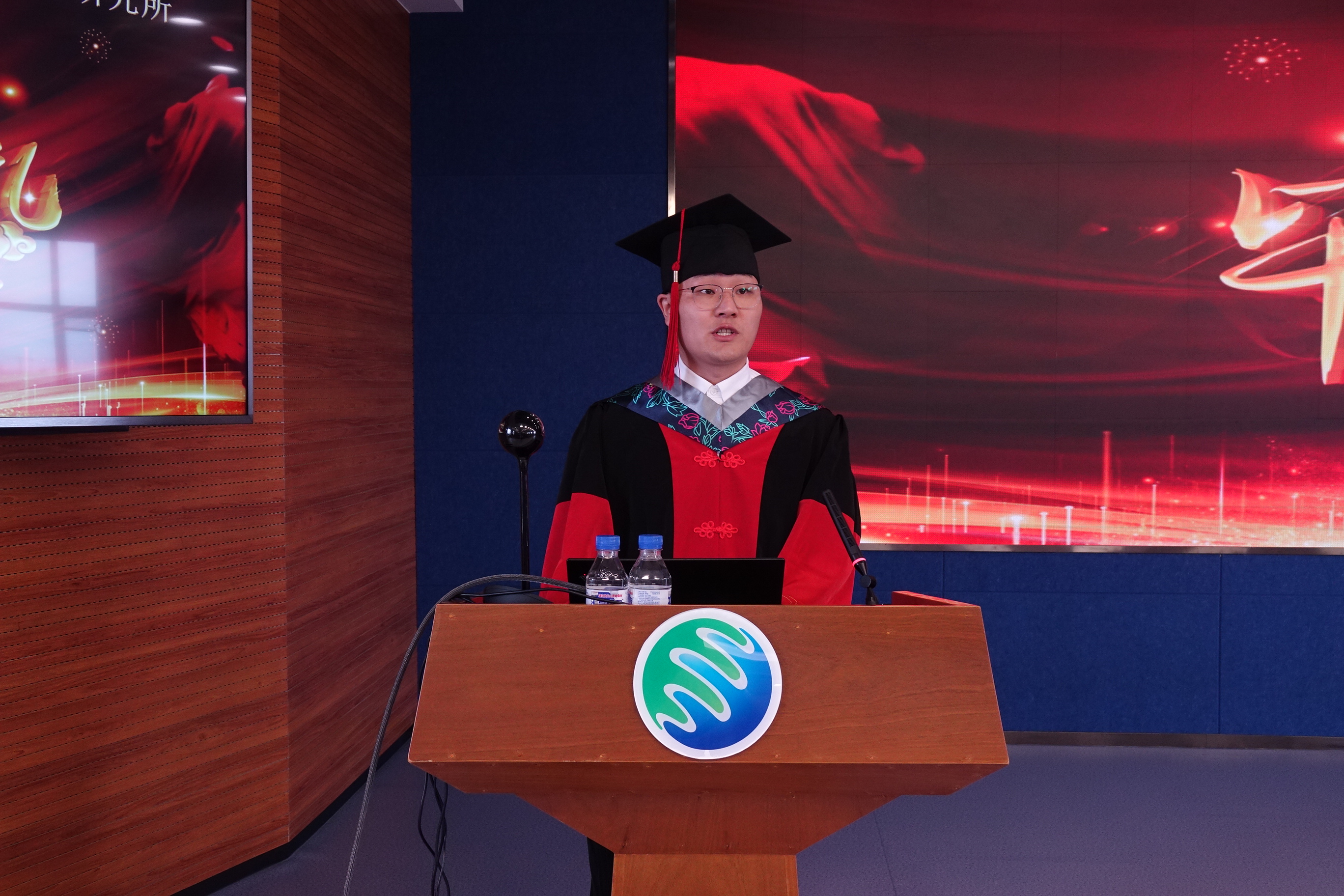 博士畢業(yè)生崔虎、碩士畢業(yè)生李紹陽代表全體博士和碩士畢業(yè)生發(fā)言,他們的發(fā)言回顧了入學時的欣喜、治學時的艱辛、迷茫時的求索、成果發(fā)表時的激動,表達了對母校的眷戀、對導(dǎo)師的感激。他們對未來滿懷憧憬,并勵志用青春和熱血報效祖國。他們以優(yōu)異的成績畢業(yè),為自己在東北地理所的求學生涯提交了圓滿的答卷。