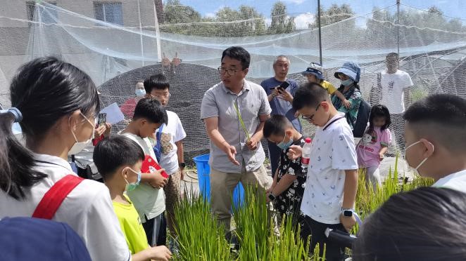 在盆栽實驗場,沙漢景博士詳細講解了水稻植株的結(jié)構(gòu)和不同生長時期的特性,帶領(lǐng)同學(xué)們認識了不同發(fā)育時期水稻植株的生長特性;王樂博士向同學(xué)們展示了不同品種大豆植株的生長性狀,介紹了野生大豆與常規(guī)大豆的區(qū)別,并認真觀察了開花期的大豆植株特征。同學(xué)們通過近距接觸農(nóng)作物,了解東北主要農(nóng)作物的生長史,切身體會到了日常食用的稻米和豆制品的來之不易,并表示今后會更加愛惜糧食,減少浪費,從我做起。此次活動得到了參與家庭的一致好評。