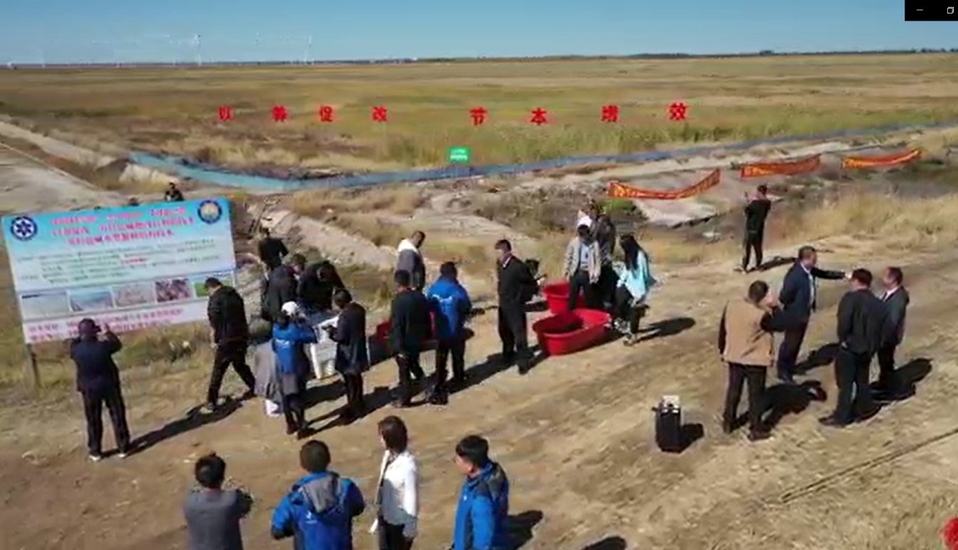 2022年9月24日,中國科學(xué)院戰(zhàn)略性先導(dǎo)科技專項(A類)鹽堿地生態(tài)治理與高效利用大安示范區(qū)模式四“鹽堿濕地資源利用與生態(tài)功能提升模式”在位于白城市鎮(zhèn)賚縣的建平基地召開了現(xiàn)場觀摩會。中國科學(xué)院東北地理與農(nóng)業(yè)生態(tài)研究所黨委書記蘇陽,白城市農(nóng)業(yè)農(nóng)村局局長范非、副局長于洪祥,鎮(zhèn)賚縣副縣長范立家、農(nóng)業(yè)農(nóng)村局副局長馮明,吉林農(nóng)業(yè)大學(xué)李月紅教授,吉林省水產(chǎn)科學(xué)研究院陳偉強(qiáng)副研究員,吉林省水產(chǎn)技術(shù)推廣總站李兆君高級工程師,白城市水產(chǎn)技術(shù)推廣站站長孫闖教授級高級工程師,中國科學(xué)院東北地理與農(nóng)業(yè)生態(tài)研究所辦公室副主任殷麗婭、黃迎新研究員等領(lǐng)導(dǎo)和專家應(yīng)邀參加了觀摩會。李月紅教授擔(dān)任現(xiàn)場測產(chǎn)專家組組長,黃迎新研究員擔(dān)任觀摩會主持人。