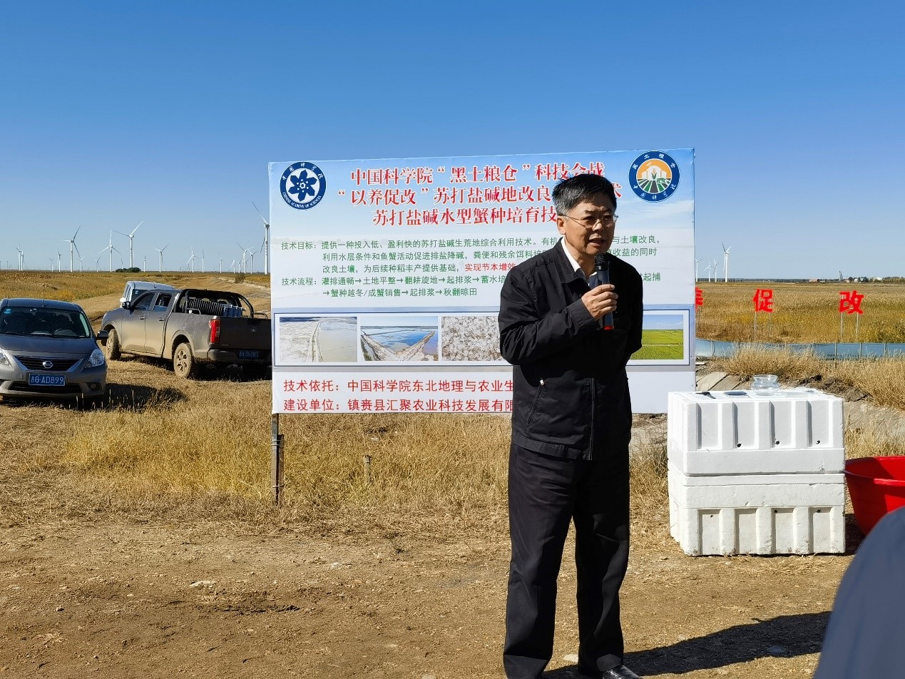 蘇陽介紹了“黑土糧倉”科技會戰(zhàn)作為深入貫徹習(xí)近平總書記“把黑土地用好養(yǎng)好”“端牢中國飯碗”重要指示精神、保障我國糧食安全與生態(tài)安全重要舉措的歷史使命,充分肯定了大安示范區(qū)扎根吉林省西部蘇打鹽堿地所取得的重要階段性進(jìn)展以及對吉林省“千億斤糧食”工程的重要作用,對鹽堿濕地資源利用與生態(tài)功能提升模式科技人員積極創(chuàng)新、不斷探索、研發(fā)新技術(shù)的精神以及“小扣蟹、大產(chǎn)業(yè)”的進(jìn)展給予了高度評價,鼓勵科技人員要繼續(xù)立足國民經(jīng)濟(jì)主戰(zhàn)場,勇于擔(dān)當(dāng)、敢于創(chuàng)新;同時對白城市政府、鎮(zhèn)賚縣政府以及龍頭企業(yè)的大力支持和協(xié)作表示感謝。