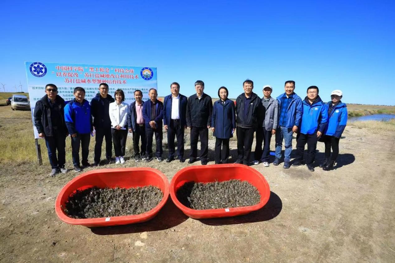 測產(chǎn)結(jié)果顯示,蟹種產(chǎn)量為77公斤/畝,規(guī)格140只/公斤,長勢良好、活力強(qiáng)、個頭整齊、底板干凈、肥度飽滿。專家組一致認(rèn)為,蘇打鹽堿水型蟹種培育技術(shù)和“以養(yǎng)促改”蘇打鹽堿地改良利用技術(shù)效果顯著。