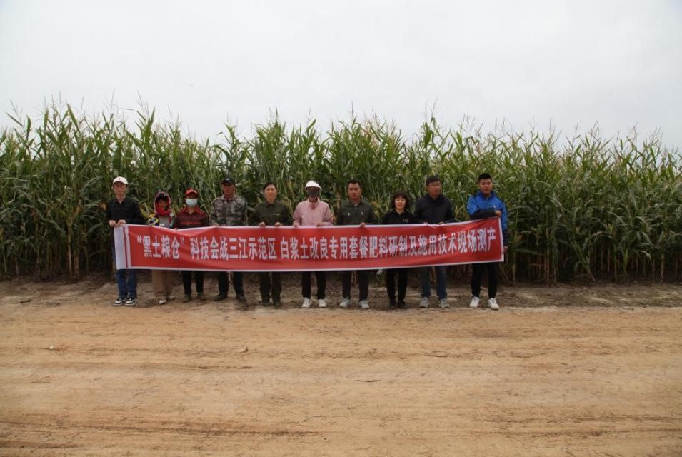 三江示范區(qū)“白漿土改良專用套餐肥料研制及施用技術(shù)”召開現(xiàn)場測產(chǎn)會(huì)