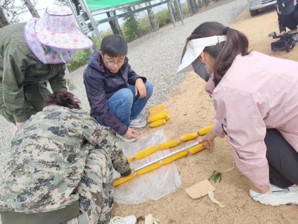 測產(chǎn)專家實(shí)地調(diào)查了曙光農(nóng)場四分場、五分場和二分場核心試驗(yàn)區(qū),針對(duì)玉米長勢(shì)確定了具體的測產(chǎn)方案。子模式負(fù)責(zé)人王玲莉高級(jí)工程師、專家組成員和曙光農(nóng)場技術(shù)人員在試驗(yàn)和示范區(qū)對(duì)玉米株數(shù)、穗數(shù)、穗重等進(jìn)行計(jì)數(shù)和稱量,現(xiàn)場脫粒,測定玉米水分含量,按照玉米國標(biāo)14%標(biāo)準(zhǔn)水折算成畝產(chǎn)量。在記產(chǎn)區(qū)外,每個(gè)處理隨機(jī)取五點(diǎn),采集了土壤和植物樣本,旨在通過室內(nèi)分析土壤理化性質(zhì)、作物養(yǎng)分吸收、肥料利用率等指標(biāo),解析養(yǎng)分轉(zhuǎn)化與利用機(jī)制,科學(xué)評(píng)價(jià)技術(shù)的效果。