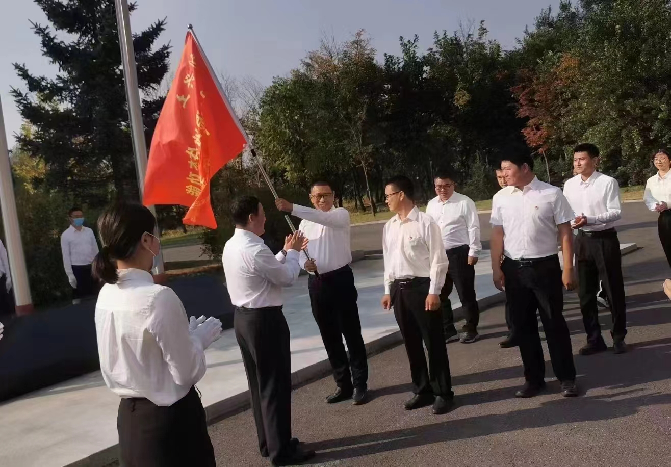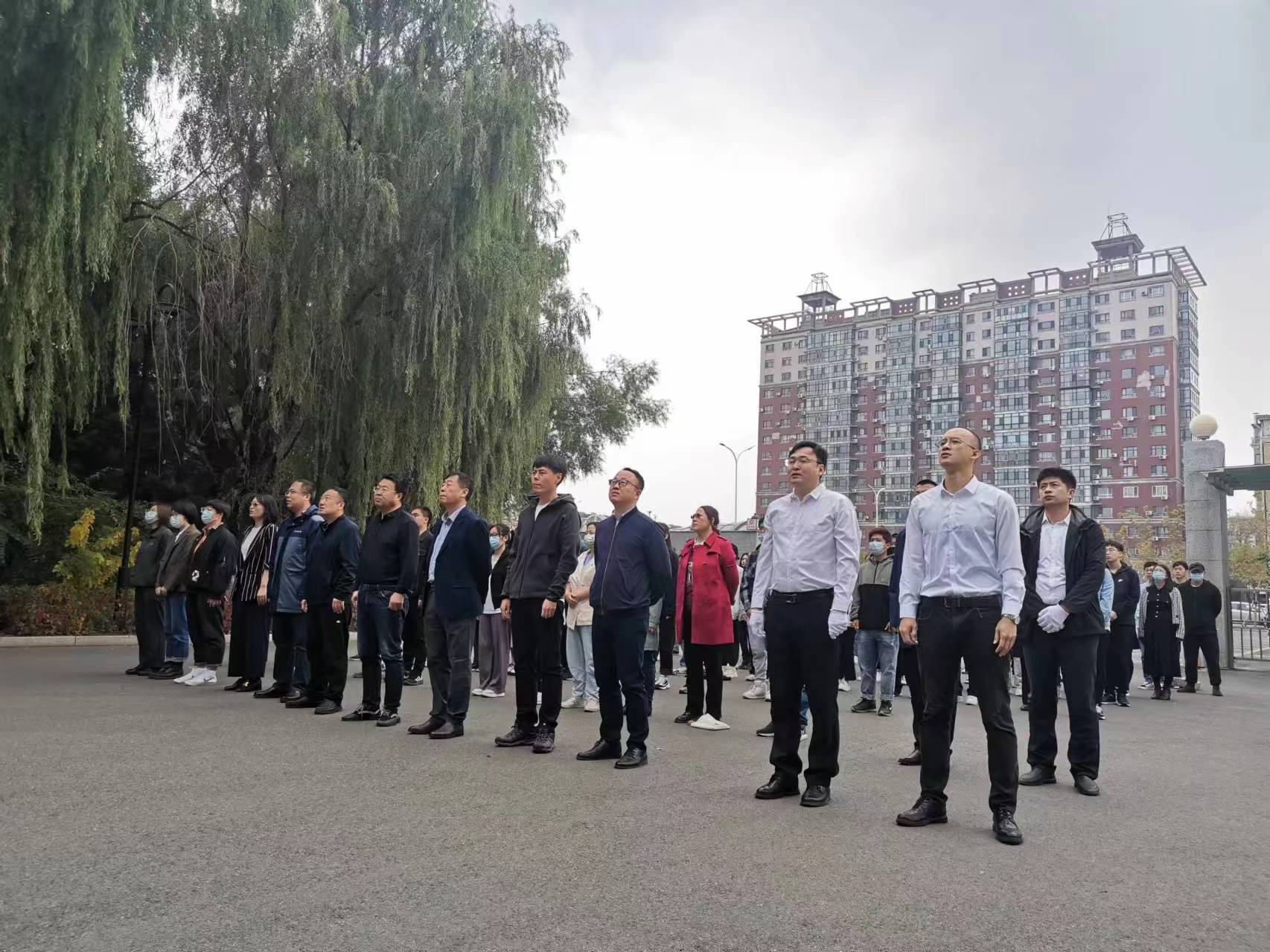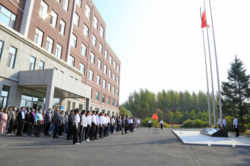 伴隨著莊嚴雄壯的國歌聲,鮮艷的五星紅旗冉冉升起,全體人員莊嚴肅立,齊唱國歌,行注目禮。