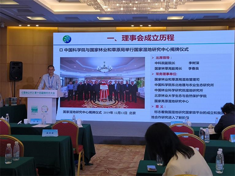國(guó)家濕地研究中心副秘書長(zhǎng)王國(guó)棟副研究員進(jìn)行理事會(huì)工作匯報(bào)