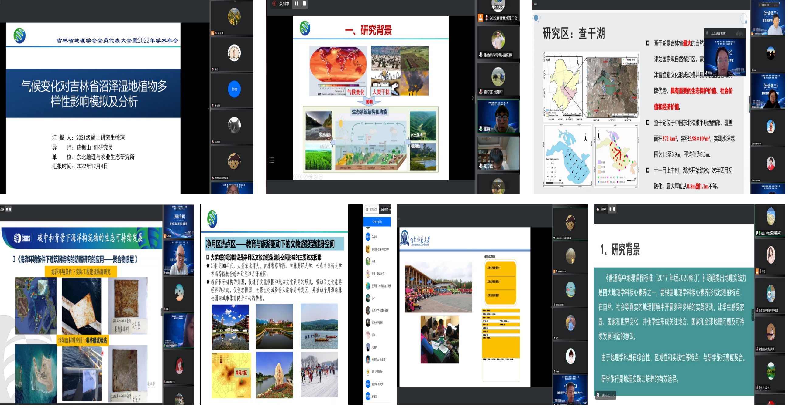 本次會議以線上和線下相結(jié)合的形式舉行,來自中國科學(xué)院東北地理與農(nóng)業(yè)生態(tài)研究所、東北師范大學(xué)、吉林大學(xué)等多家省內(nèi)科研單位、高校、中學(xué)的300余名專家學(xué)者線上和線下參加會議。組委會根據(jù)投稿全文和會場匯報評選出10篇青年學(xué)者優(yōu)秀論文和6篇地理教育優(yōu)秀論文。