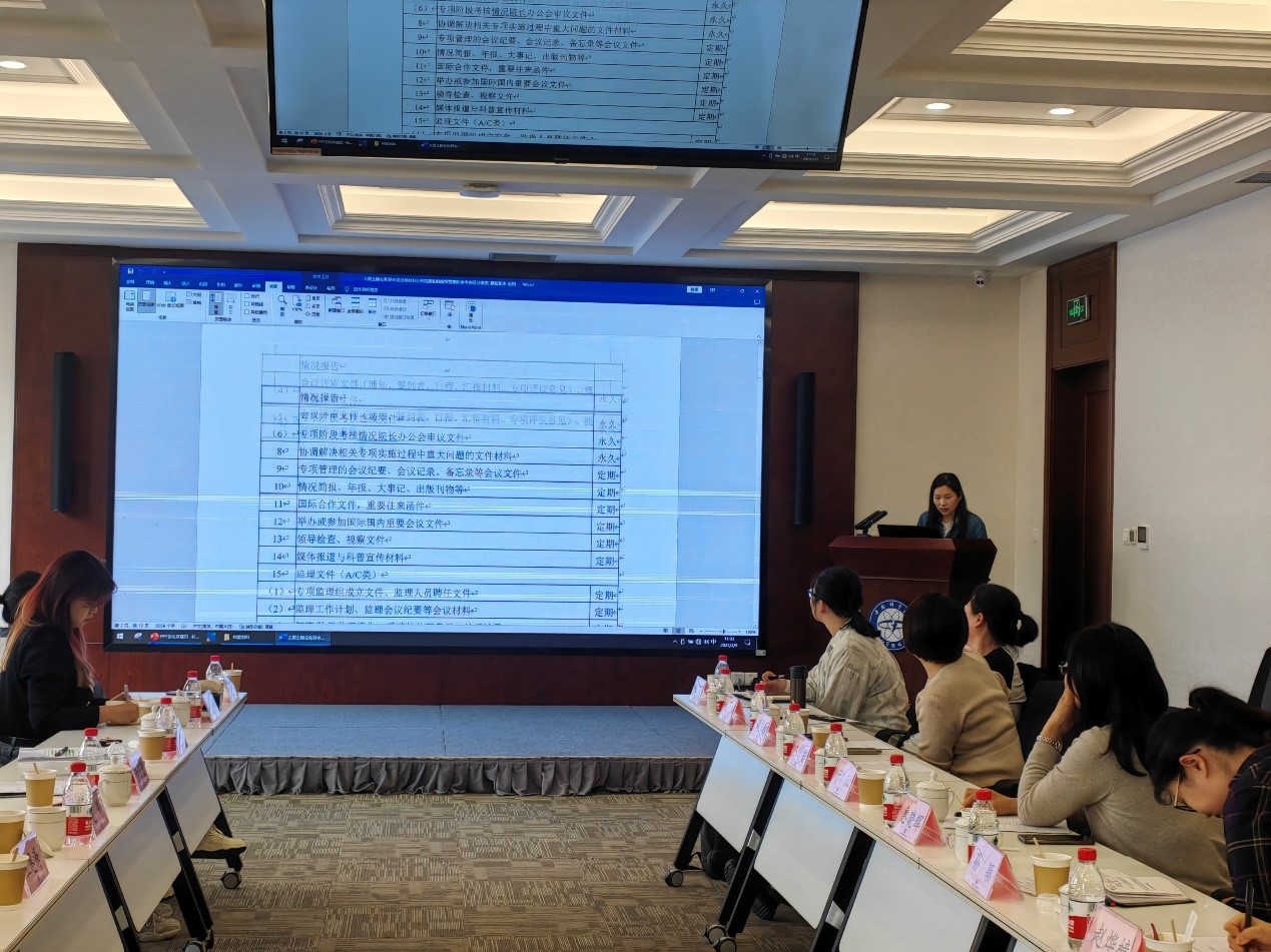 會上,大連化物所綜合檔案室主任于沁詳細介紹了本所承擔的專項檔案工作組織管理情況、規(guī)章制度建設情況及歸檔文件材料預立卷整理的注意事項。東北地理所辦公室副主任殷麗婭介紹了東北地理所的基本概況、先導專項檔案工作組織架構(gòu)和項目層級檔案進展情況。雙方就專項檔案階段考核待檢工作中的具體問題,開展了深入而熱烈的交流與研討。