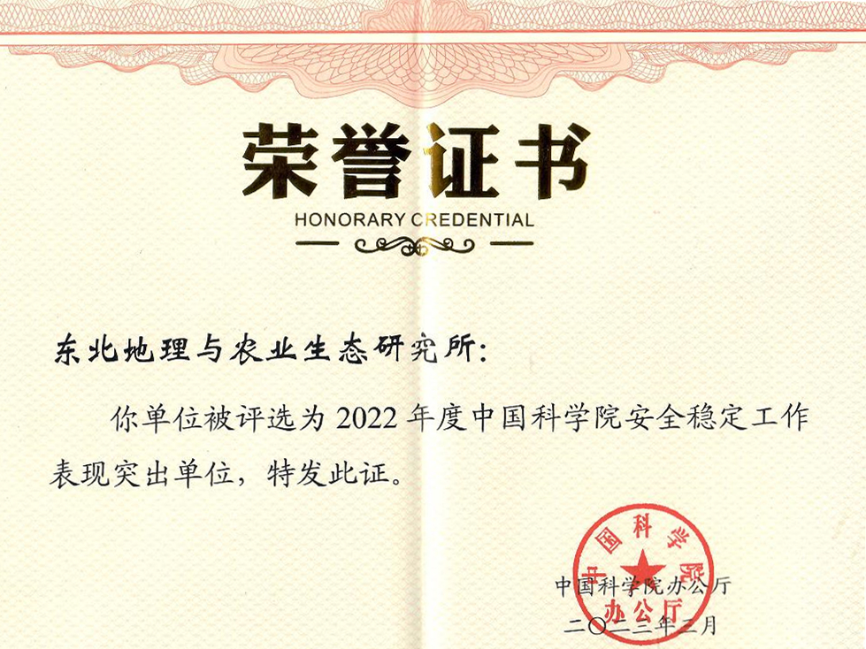 東北地理所榮獲“中國科學(xué)院2022年度安全穩(wěn)定工作突出單位”稱號(hào)