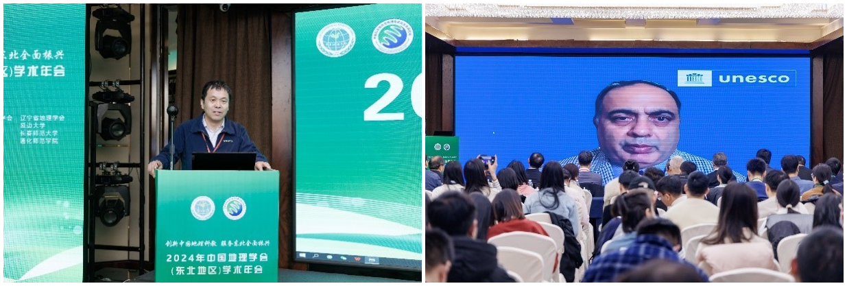 第二階段的會議主旨報告會由東北師范大學地理科學學院院長白娥教授主持。中國科學院青藏高原研究所副所長李新研究員、中國科學院新疆生態(tài)與地理研究所副所長孫福寶研究員、中國科學院地理科學與資源研究所李召良研究員、東北師范大學楊青山教授、遼寧師范大學孫才志教授、中國科學院東北地理所姜明研究員分別以中國冰凍圈變化、融合深度學習與物理模型的全球洪水模擬與風險預估、全球土地覆被變化生物物理反饋的溫度效應、基于承接產業(yè)轉移視角的經濟欠發(fā)達城市存量用地治理對策、關于加快形成海洋經濟新質生產力、黑土地保護中的地理學問題為主題作大會報告。