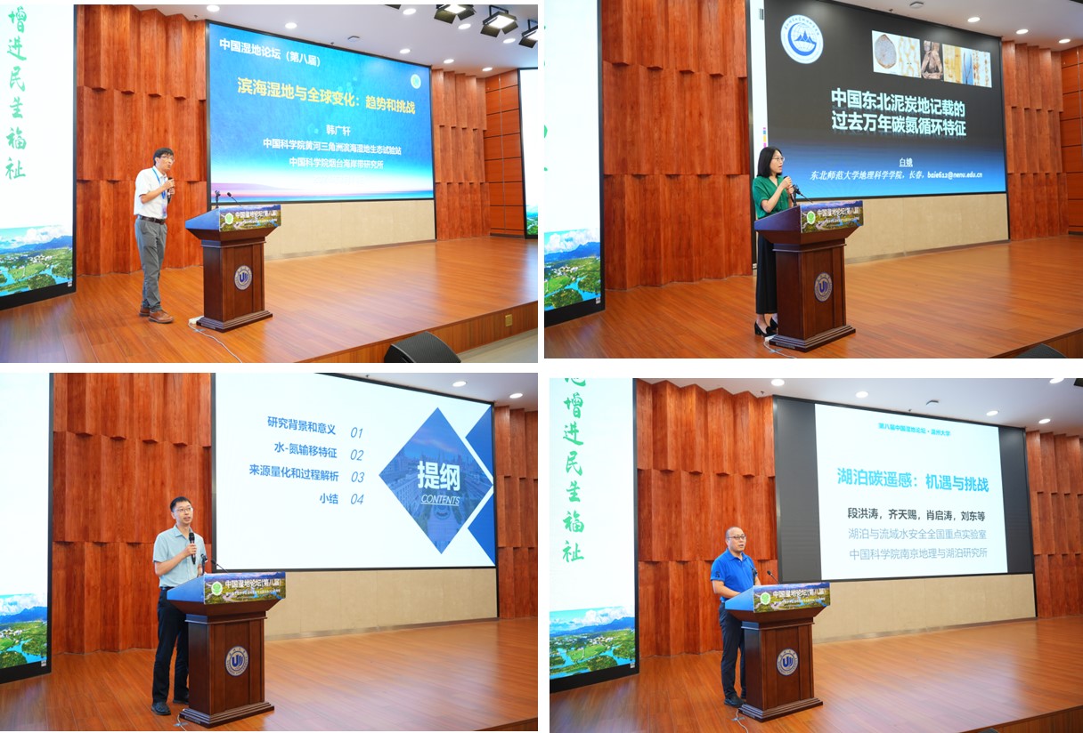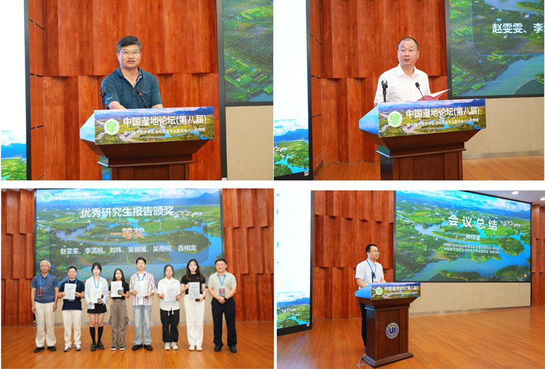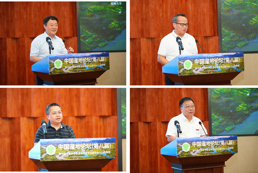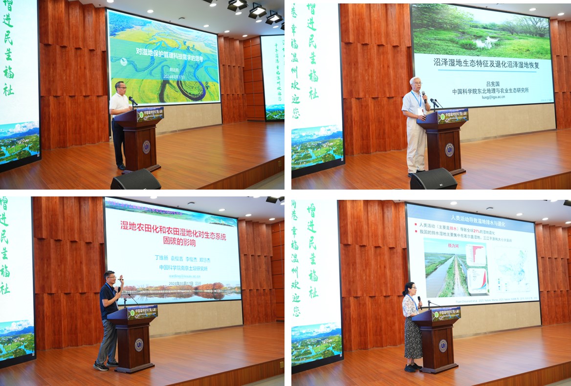 2024年8月16日至18日,“中國濕地論壇(第八屆)暨中國生態(tài)學(xué)學(xué)會(huì)濕地生態(tài)專業(yè)委員會(huì)2024年年會(huì)”在浙江溫州大學(xué)成功召開。本次大會(huì)由中國生態(tài)學(xué)學(xué)會(huì)濕地生態(tài)專業(yè)委員會(huì)、國家濕地研究中心、溫州大學(xué)主辦,溫州大學(xué)生命與環(huán)境科學(xué)學(xué)院、中國科學(xué)院東北地理與農(nóng)業(yè)生態(tài)研究所(后稱“東北地理所”)、國際濕地研究聯(lián)盟、國際濕地科學(xué)家協(xié)會(huì)中國分會(huì)等協(xié)辦。中國生態(tài)學(xué)學(xué)會(huì)濕地生態(tài)專業(yè)委員會(huì)主任、東北地理所所長姜明研究員,國家林業(yè)和草原局原一級(jí)巡視員、教授級(jí)高級(jí)工程師鮑達(dá)明,中國生態(tài)學(xué)學(xué)會(huì)副秘書長岳躍民研究員,溫州大學(xué)校長趙敏教授,東北地理所呂憲國研究員,中國科學(xué)院長春分院副院長、中國生態(tài)學(xué)會(huì)濕地生態(tài)專業(yè)委員會(huì)副主任、秘書長武海濤研究員,中國科學(xué)院植物研究所副所長馮曉娟研究員,中國科學(xué)院煙臺(tái)海岸帶研究所副所長韓廣軒研究員,東北師范大學(xué)地理科學(xué)學(xué)院院長白娥教授,中國科學(xué)院南京土壤研究所丁維新研究員,華東師范大學(xué)李秀珍研究員,天津大學(xué)李思亮教授,中國科學(xué)院南京地理與湖泊研究所段洪濤研究員等濕地領(lǐng)域?qū)<摇W(xué)者及研究生參加了本次盛會(huì)。本次大會(huì)共有來自60余家科研單位和高校的400余人參加會(huì)議。