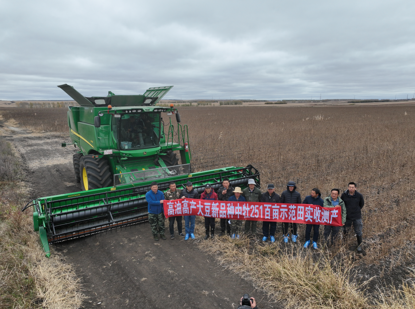 2024年9月30日,在黑龍江省五大連池市,專家組對中國科學(xué)院“種子精準(zhǔn)設(shè)計(jì)與創(chuàng)作”A類先導(dǎo)專項(xiàng)——“大豆抗旱新品種的精準(zhǔn)設(shè)計(jì)”任務(wù)中培育的大豆新品種“中牡251”百畝示范田進(jìn)行測產(chǎn)。專家組由黑龍江省農(nóng)業(yè)科學(xué)院綏化分院景玉良研究員任組長,成員有黑龍江省農(nóng)業(yè)科學(xué)院大豆研究所王廣金研究員、黑龍江省農(nóng)業(yè)科學(xué)院柴永山研究員、黑龍江省農(nóng)業(yè)科學(xué)院克山分院張勇副研究員。