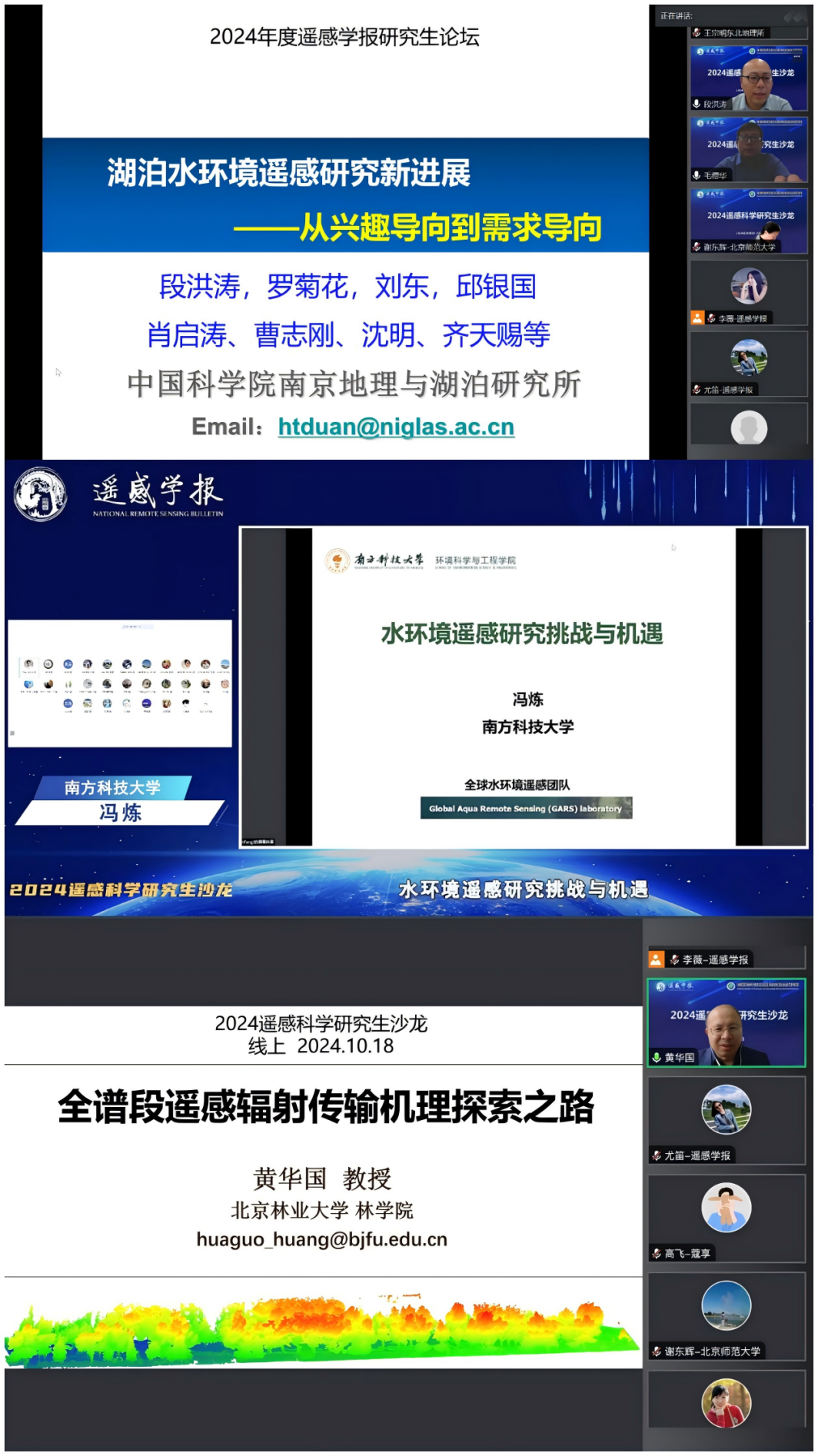 三場(chǎng)特邀學(xué)術(shù)報(bào)告主題鮮明、內(nèi)容豐富、案例生動(dòng),不僅展現(xiàn)了具有國(guó)際影響力的高水平學(xué)術(shù)成果,也將選題思路、研究心得等向與會(huì)者進(jìn)行了分享,對(duì)于遙感科學(xué)青年學(xué)者和研究生具有重要的指導(dǎo)和啟發(fā)意義。