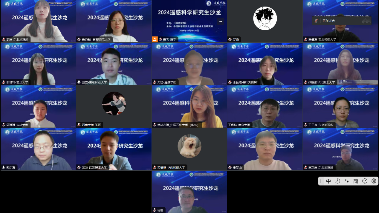 研究生是科學(xué)研究新質(zhì)生產(chǎn)力的核心,為遙感科學(xué)與技術(shù)領(lǐng)域青年學(xué)子搭建全國(guó)高水平學(xué)術(shù)交流平臺(tái),培養(yǎng)研究生對(duì)該領(lǐng)域的研究興趣,激發(fā)研究生的創(chuàng)新精神,增進(jìn)研究生對(duì)科學(xué)前沿的了解,由《遙感學(xué)報(bào)》主辦、中國(guó)科學(xué)院東北地理與農(nóng)業(yè)生態(tài)研究所(東北地理所)承辦的“2024遙感科學(xué)研究生沙龍”于10月18—20日,在長(zhǎng)春(線上)成功召開,黑土地保護(hù)與利用全國(guó)重點(diǎn)實(shí)驗(yàn)室(籌)、吉林省遙感學(xué)會(huì)、中國(guó)生態(tài)學(xué)學(xué)會(huì)生態(tài)遙感專業(yè)委員會(huì)聯(lián)合承辦。來(lái)自南京大學(xué)、復(fù)旦大學(xué)、吉林大學(xué)、中國(guó)科學(xué)院空天信息創(chuàng)新研究院、中國(guó)科學(xué)院南京地理與湖泊研究所等全國(guó)49家單位共129研究生報(bào)名參加。