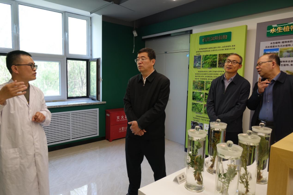 馬延峰首先來到農(nóng)業(yè)樓鹽堿地農(nóng)業(yè)研究中心,楊帆高級工程師系統(tǒng)介紹了蘇打鹽堿地治理關(guān)鍵技術(shù)、土壤改良劑研發(fā)與利用、耐鹽堿水稻、大豆、羊草等作物品種選育及鹽堿地生態(tài)修復(fù)工程實施等工作情況和科研進展。