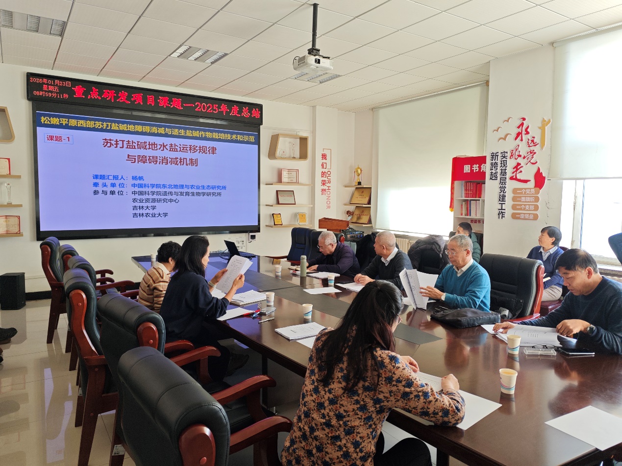 2026年1月23日,由中國(guó)科學(xué)院東北地理與農(nóng)業(yè)生態(tài)研究所牽頭承擔(dān)的國(guó)家重點(diǎn)研發(fā)計(jì)劃項(xiàng)目“松嫩平原西部蘇打鹽堿地障礙消減與適生鹽堿作物栽培技術(shù)和示范”課題一“蘇打鹽堿地水鹽運(yùn)移規(guī)律與障礙消減機(jī)制”年度總結(jié)會(huì)在東北地理所舉行。