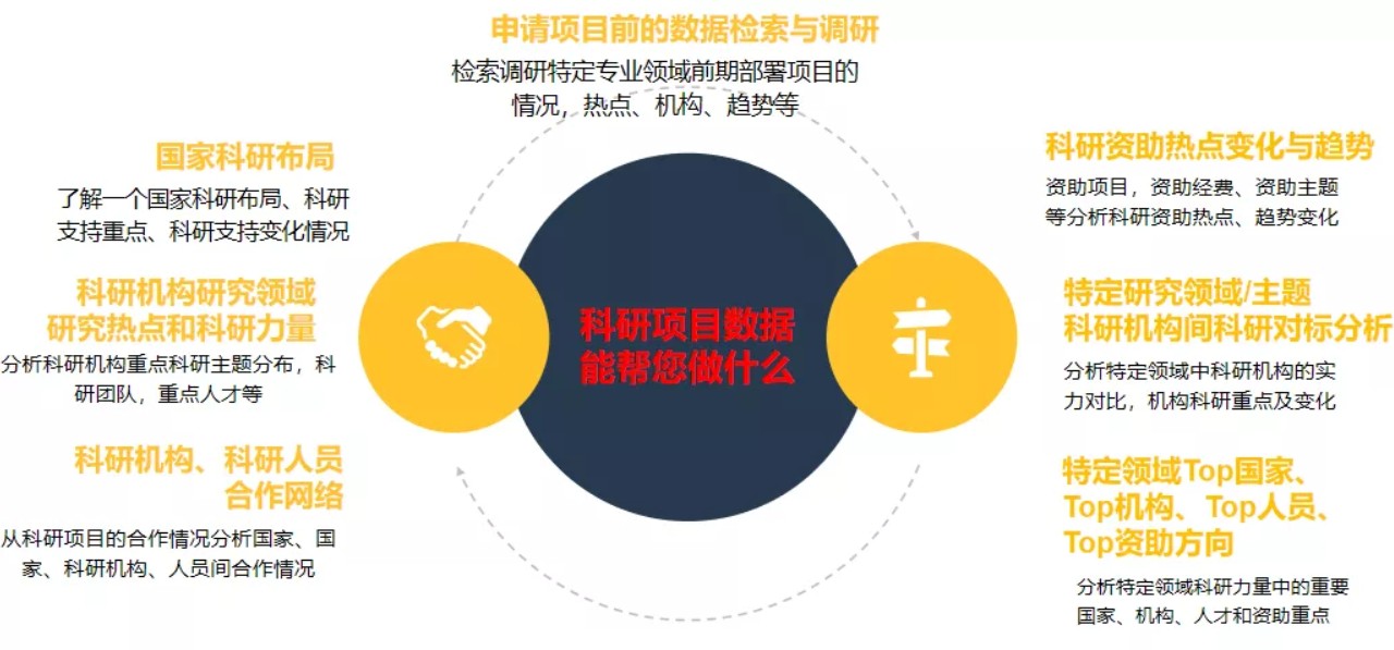 ④快速了解和把握國家、機構(gòu)、領(lǐng)域科研布局情報、科技熱點變化與趨