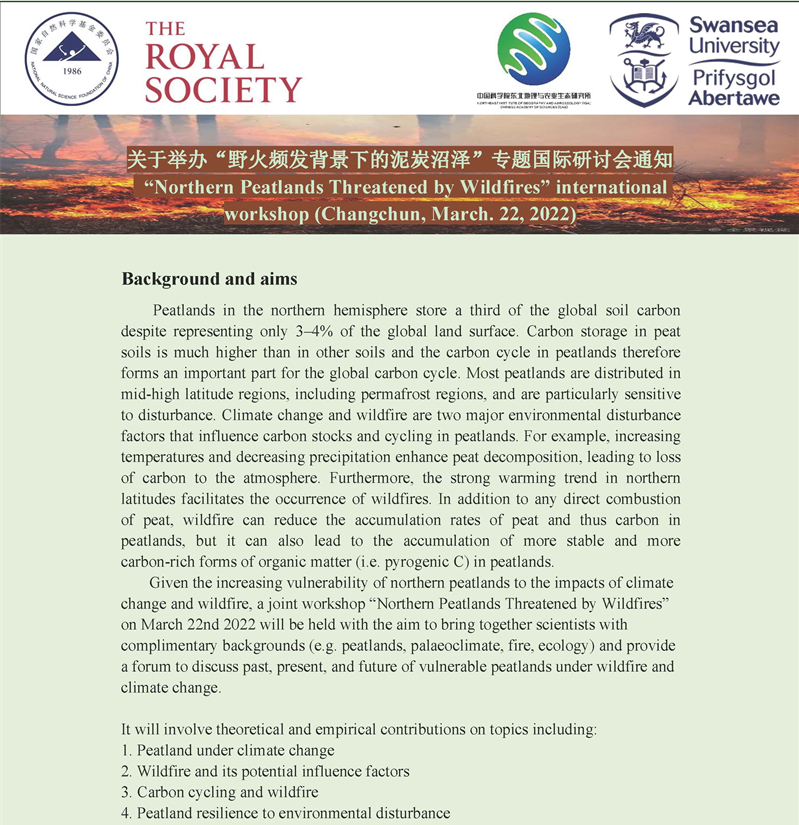 關于舉辦“野火頻發(fā)背景下的泥炭沼澤”專題國際研討會通知“Northern Peatlands Threatened by Wildfires” international workshop (Changchun, March. 22, 2022)