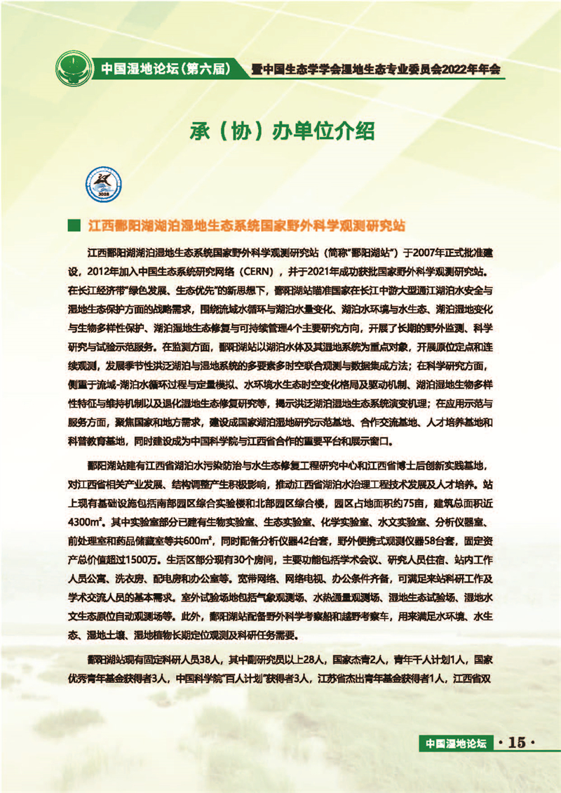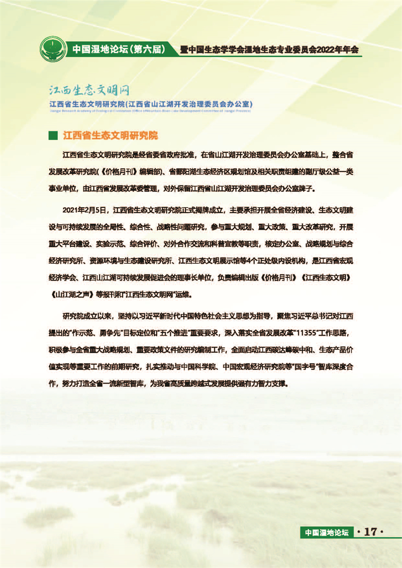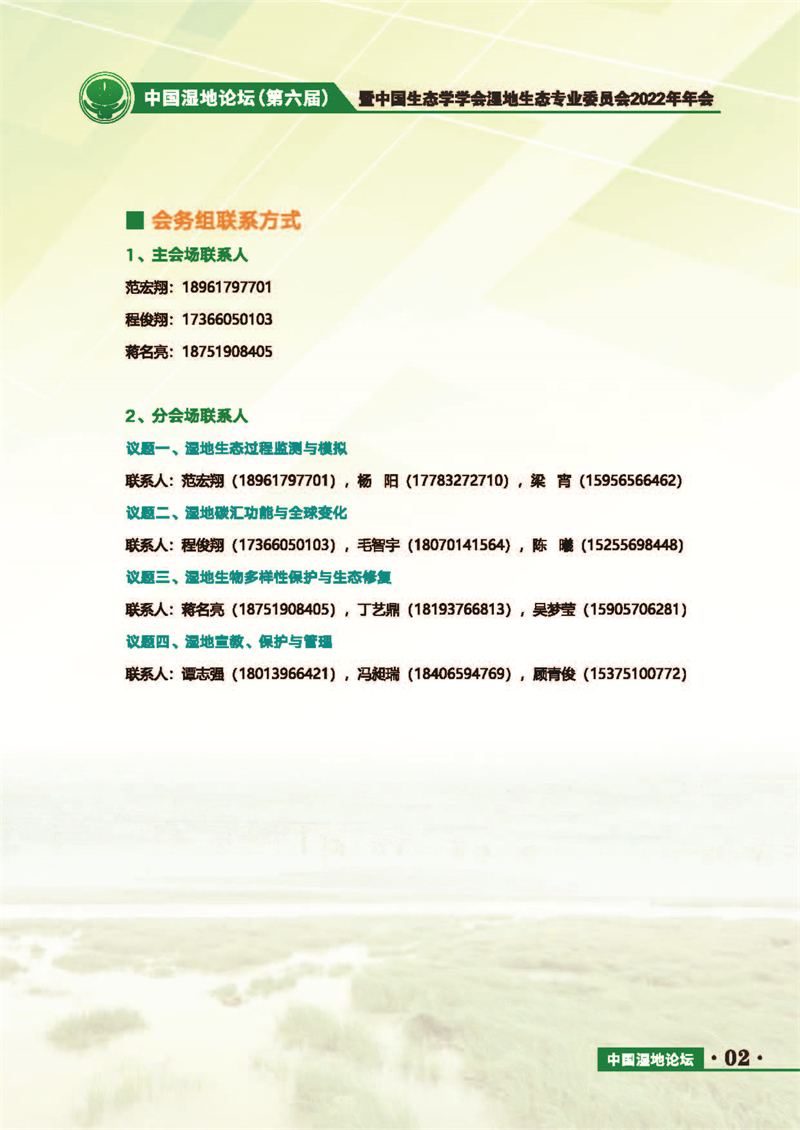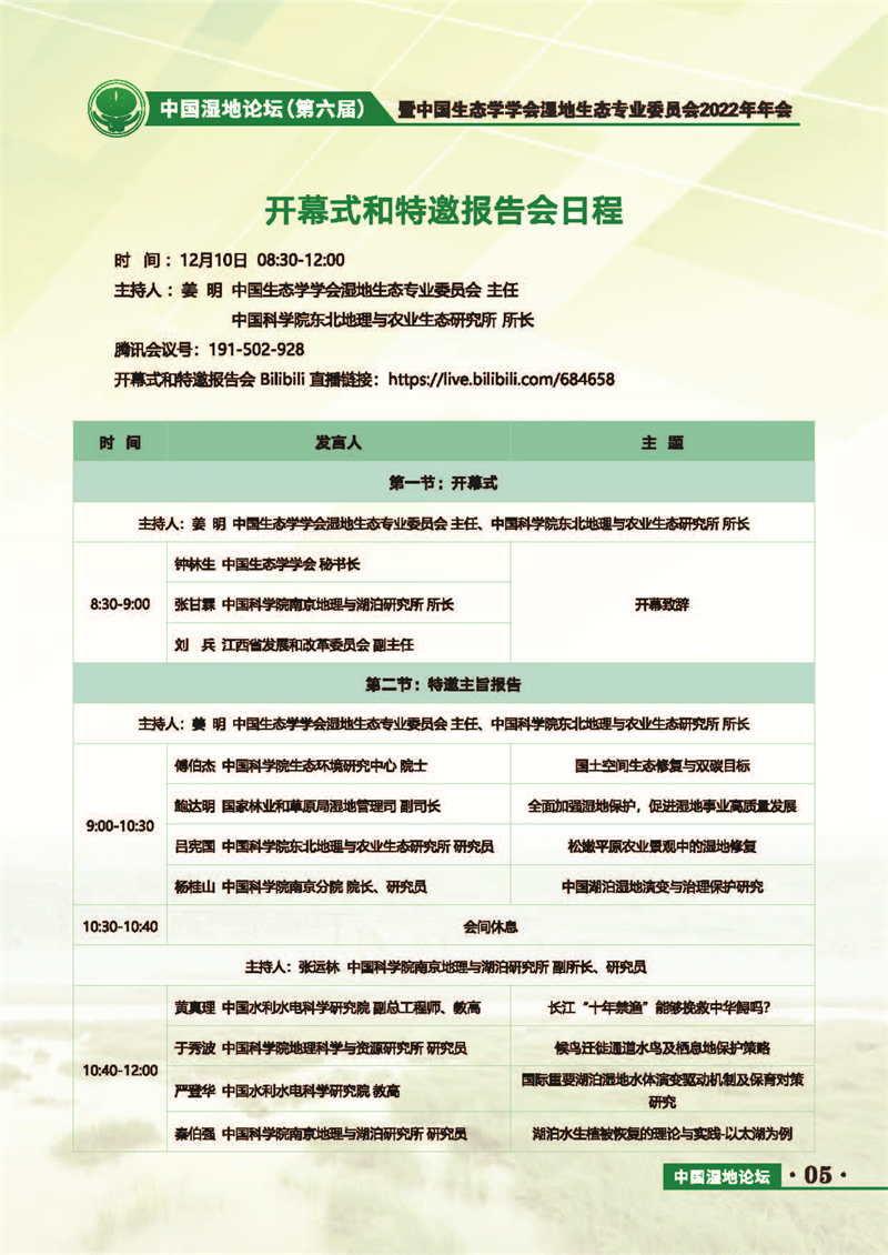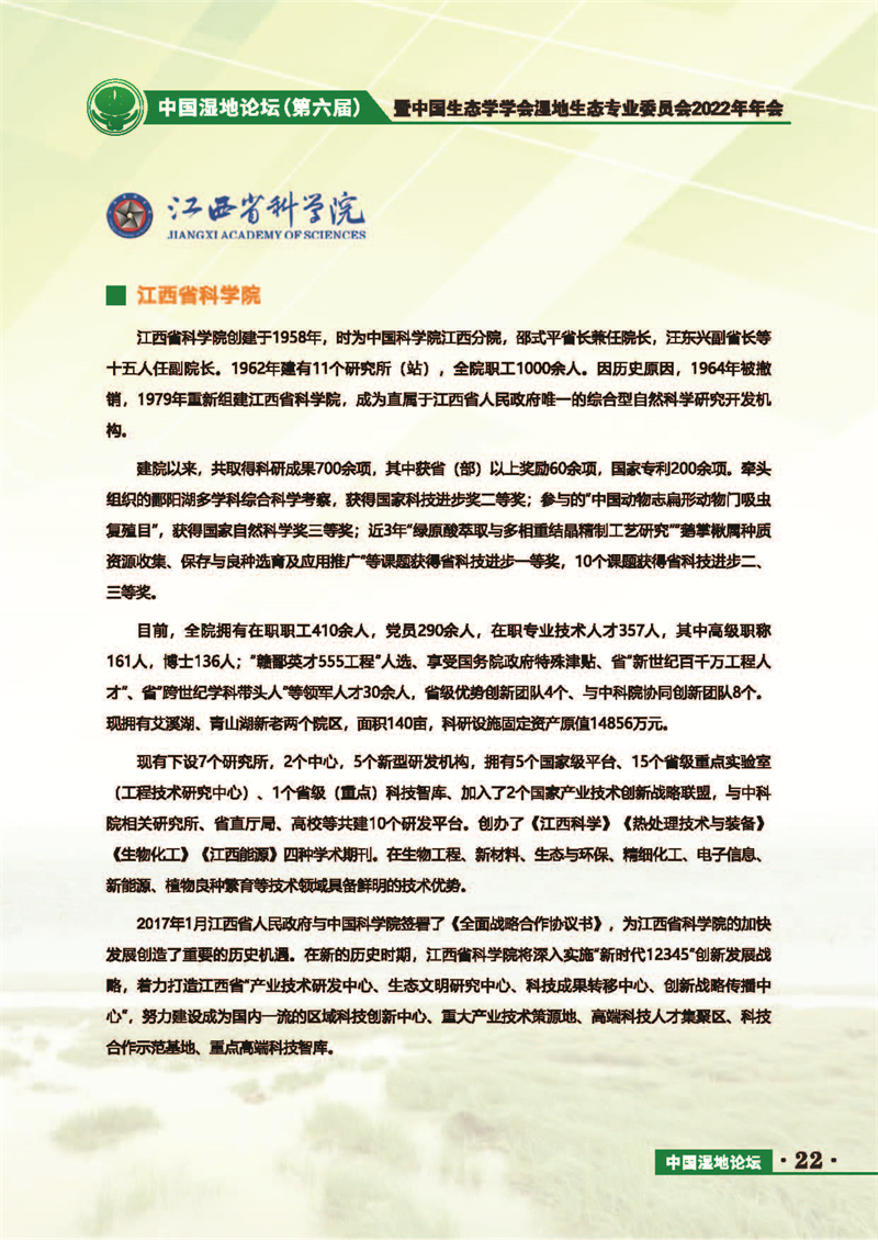 中國(guó)濕地論壇(第六屆)暨中國(guó)生態(tài)學(xué)學(xué)會(huì)濕地生態(tài)專(zhuān)業(yè)委員會(huì)2022年年會(huì) 會(huì)議手冊(cè)