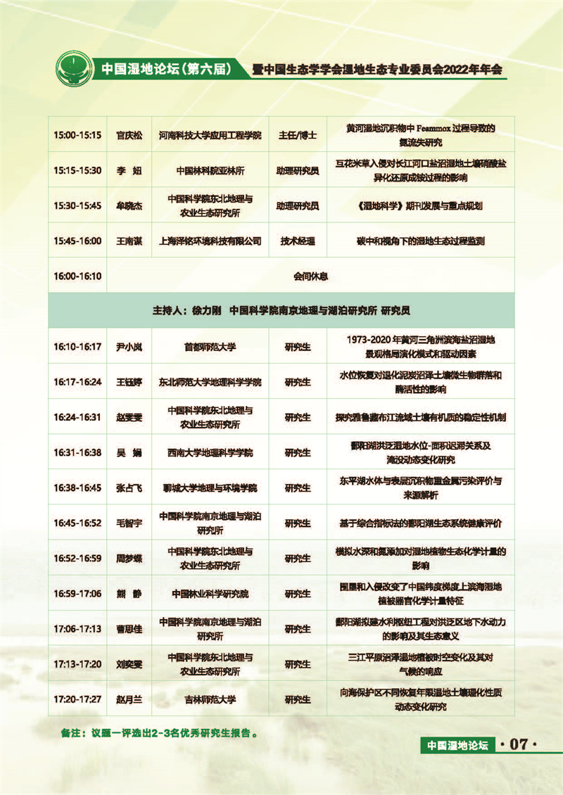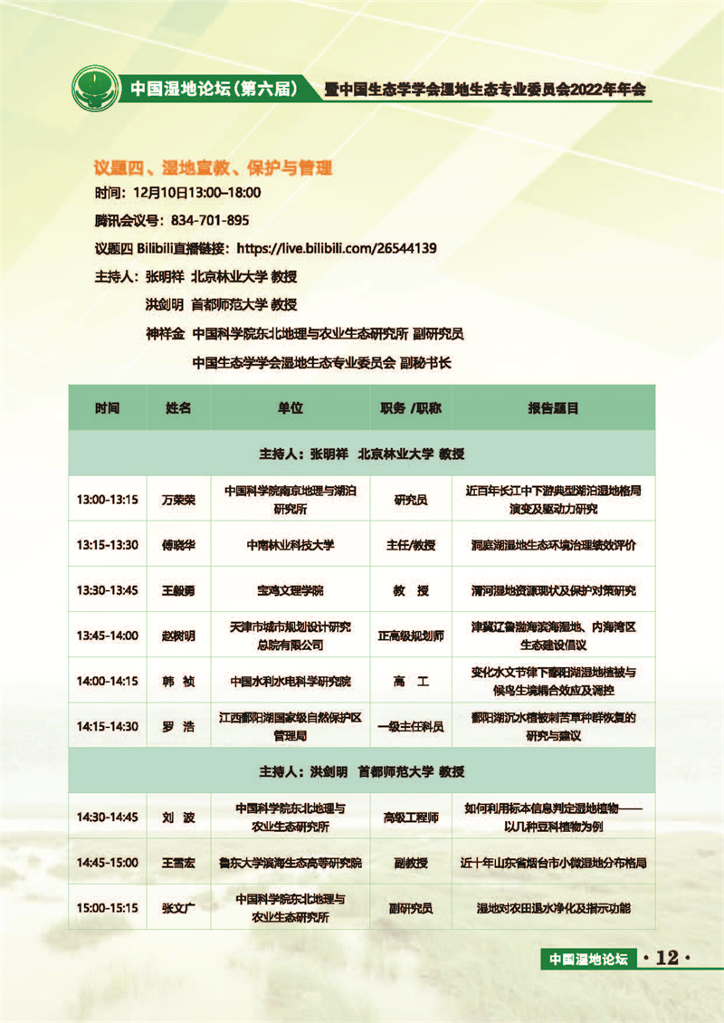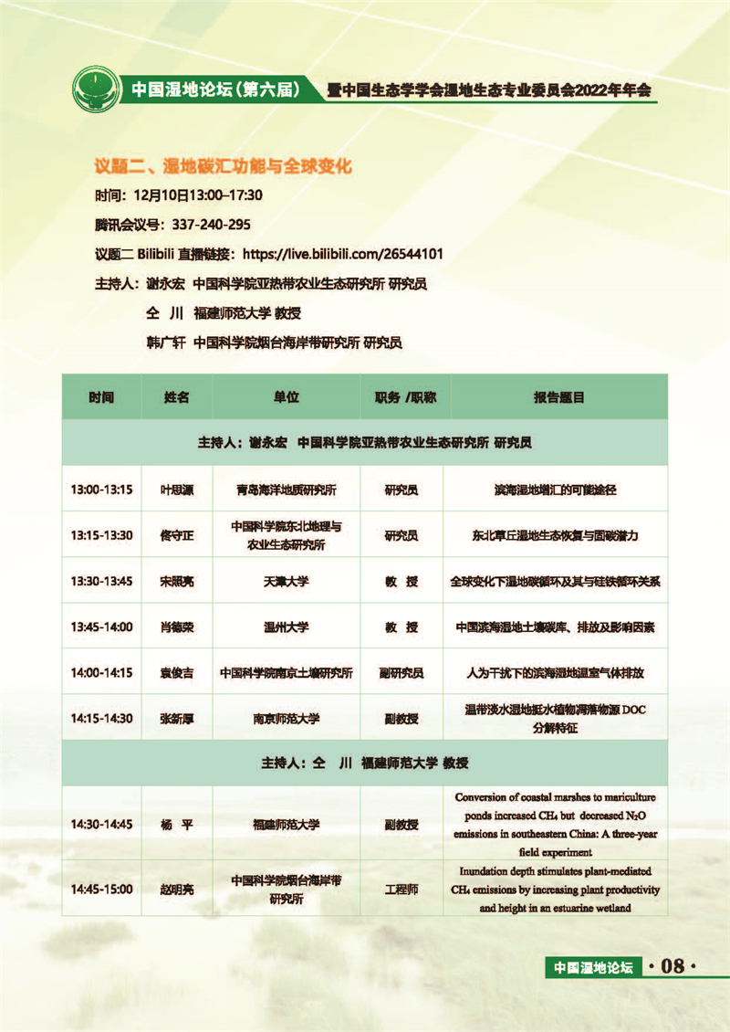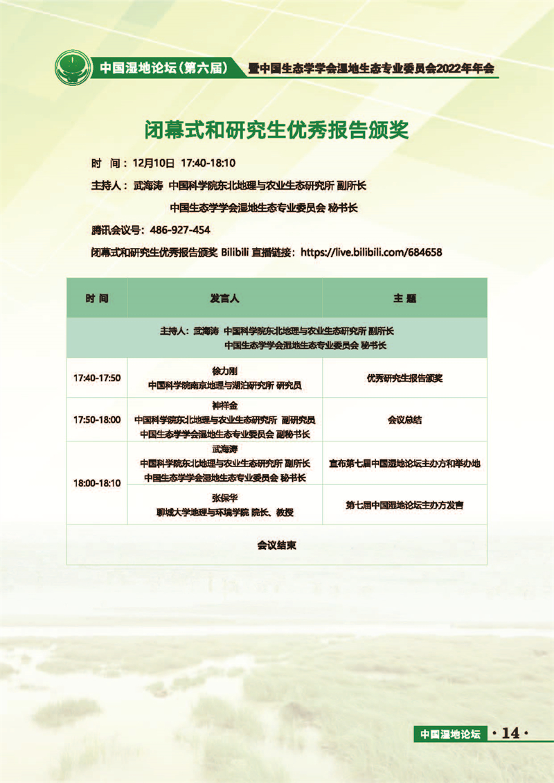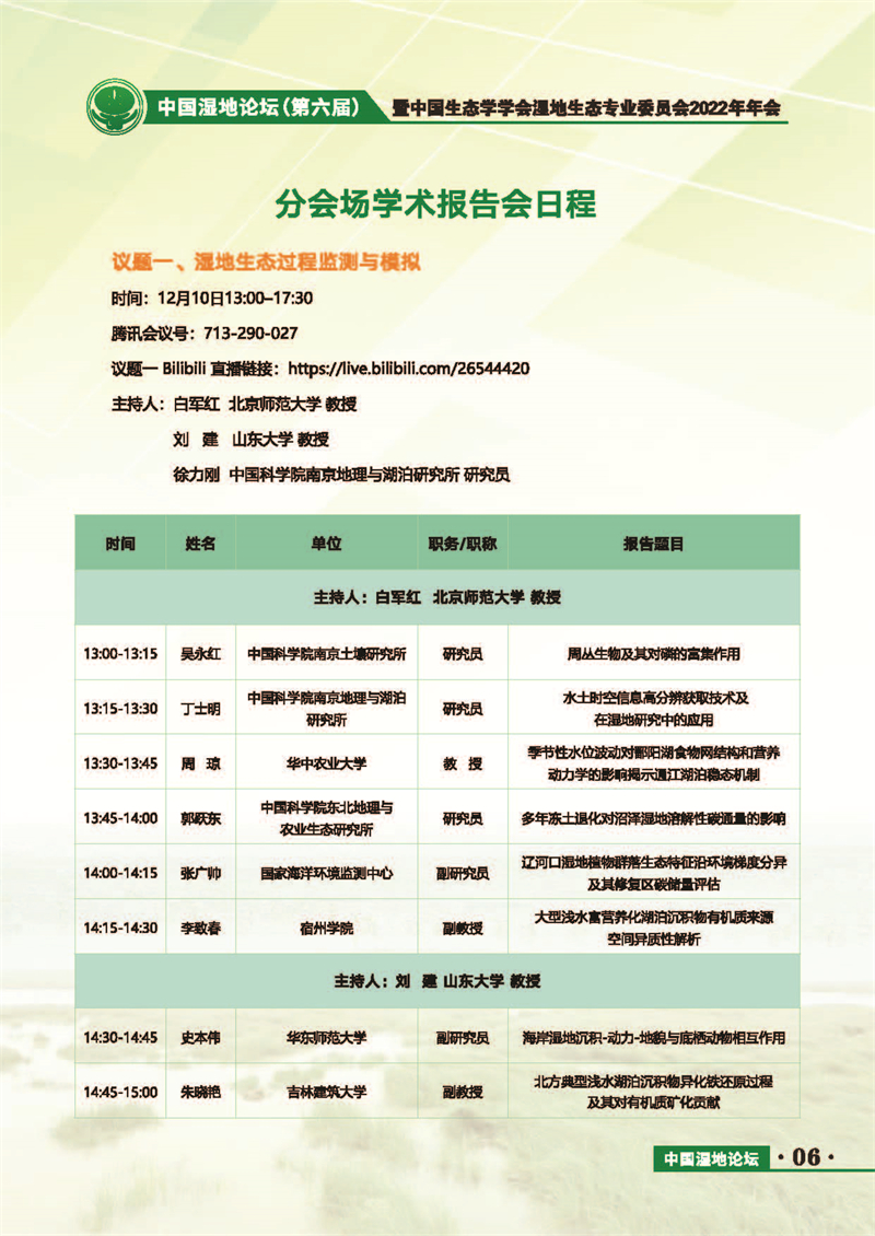 中國(guó)濕地論壇(第六屆)暨中國(guó)生態(tài)學(xué)學(xué)會(huì)濕地生態(tài)專(zhuān)業(yè)委員會(huì)2022年年會(huì) 會(huì)議手冊(cè)