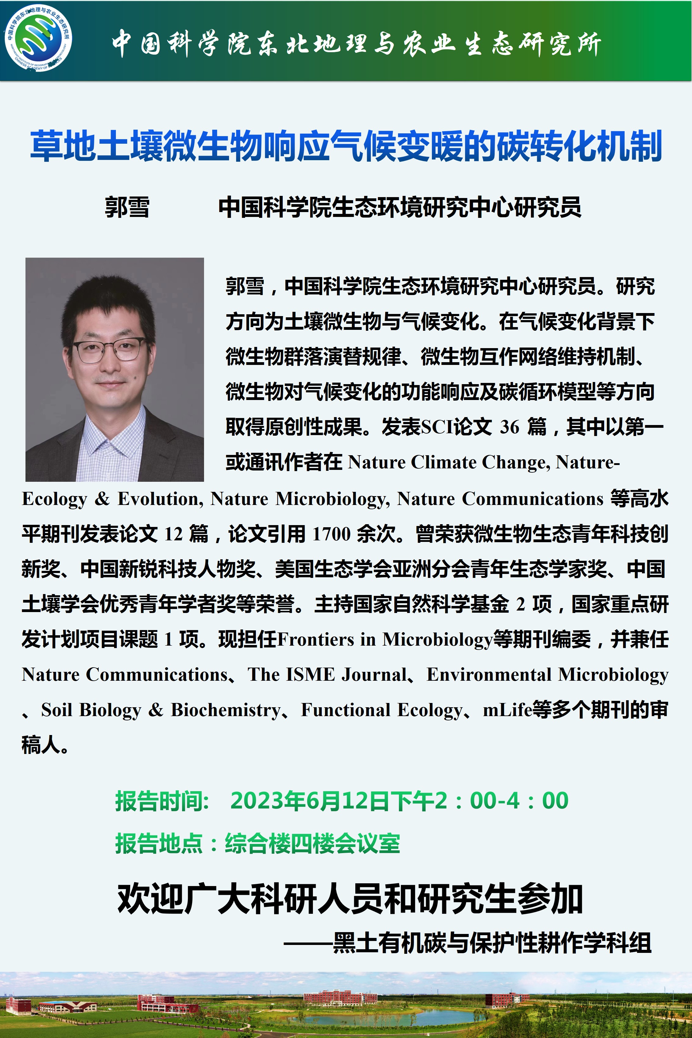 草地土壤微生物響應(yīng)氣候變暖的碳轉(zhuǎn)化機(jī)制-郭雪 研究員
