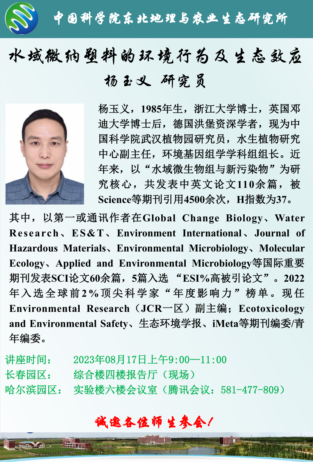 水域微納塑料的環(huán)境行為及生態(tài)效應(yīng)-楊玉義 研究員