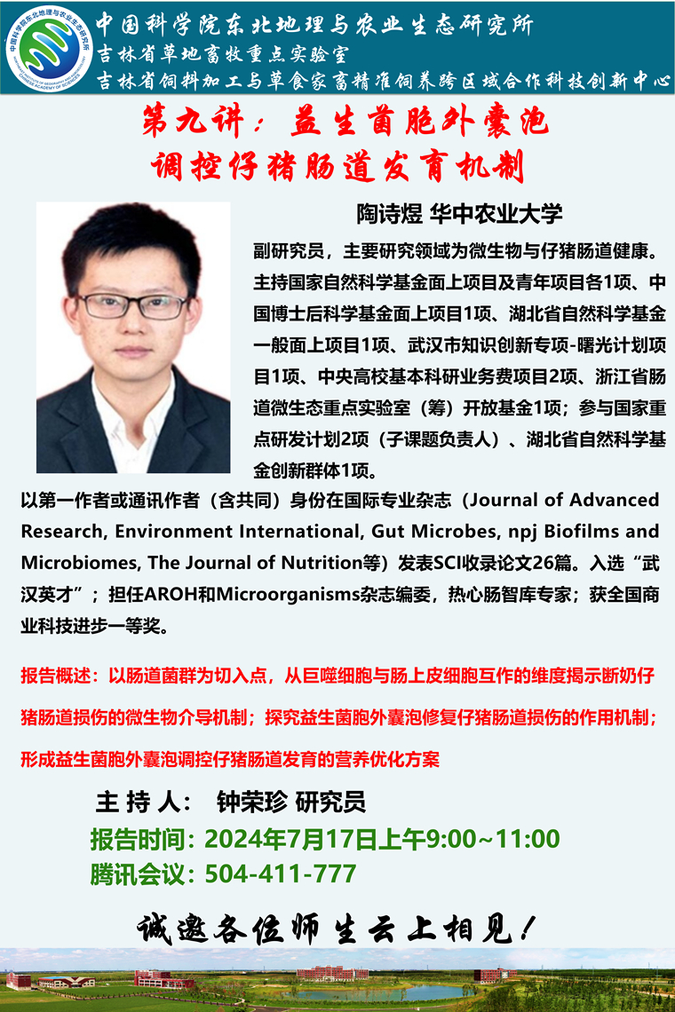 益生菌胞外囊泡調(diào)控仔豬腸道發(fā)育機(jī)制-陶詩(shī)煜 副研究員